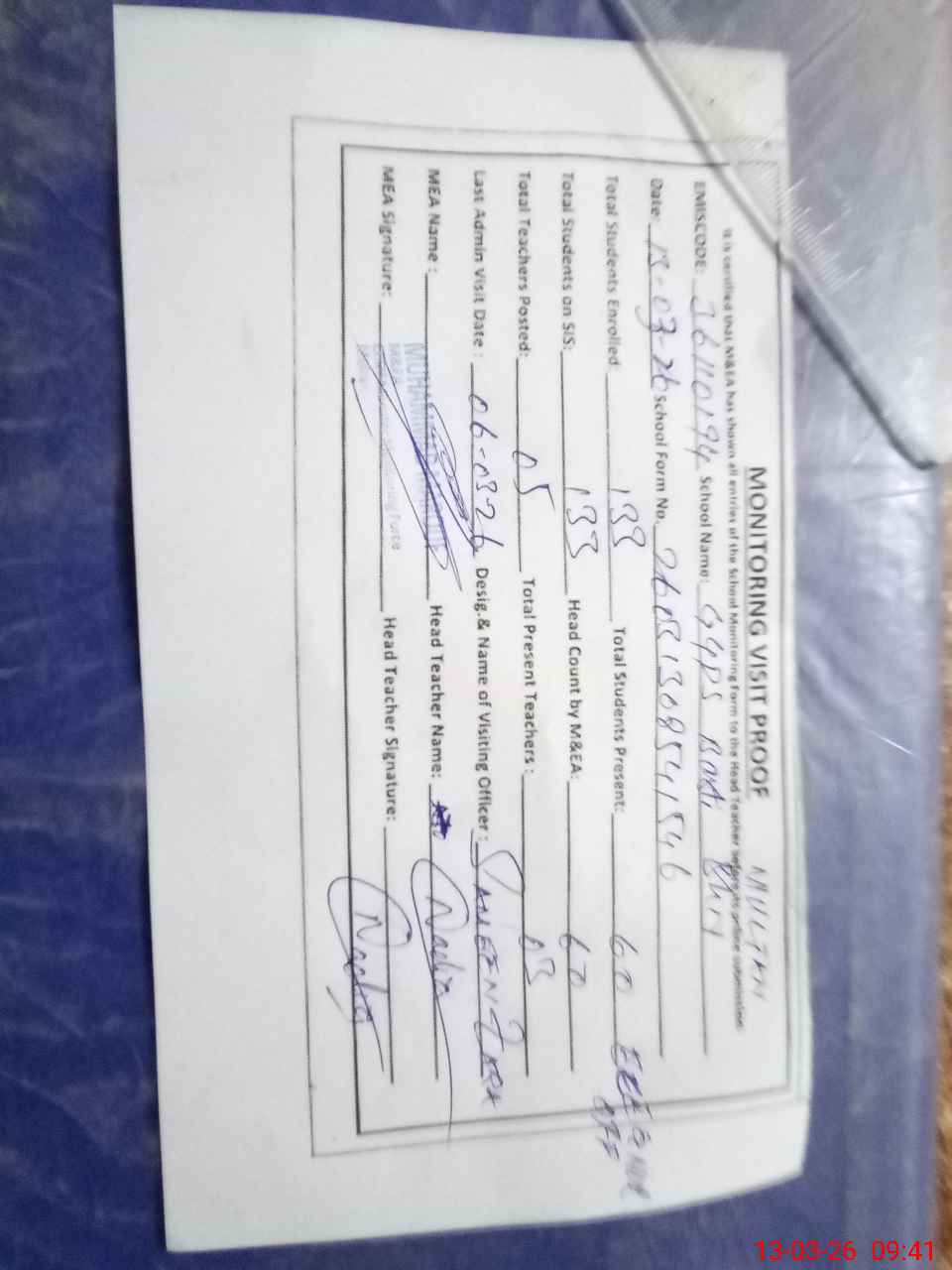 | Certified that this School was Inspected by the Undersigned MEA/DMO Today and the Information Stated Above is as Per Record. | |||||