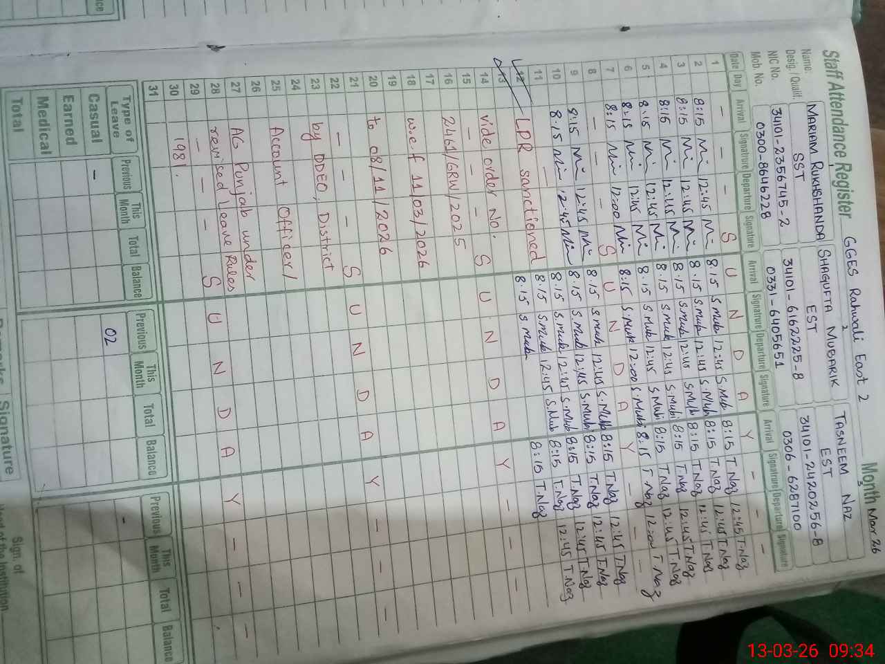 | 34**** | Ta**** Al**** | EST (Math) | Regular | 0 | 0 | 28 | 0 | 0 | 0 | 0 | 0 | 0 | Absent (Un-Authorized) |