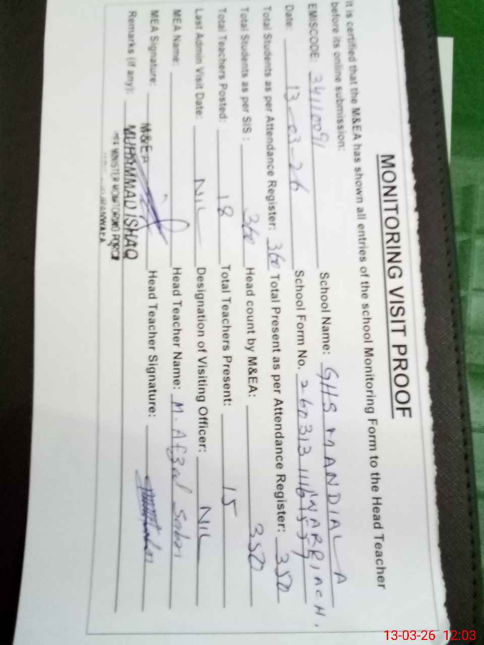 | EMIS Code: 34110091 | Name of School: GHS MANDIALA WARRIACH | |||