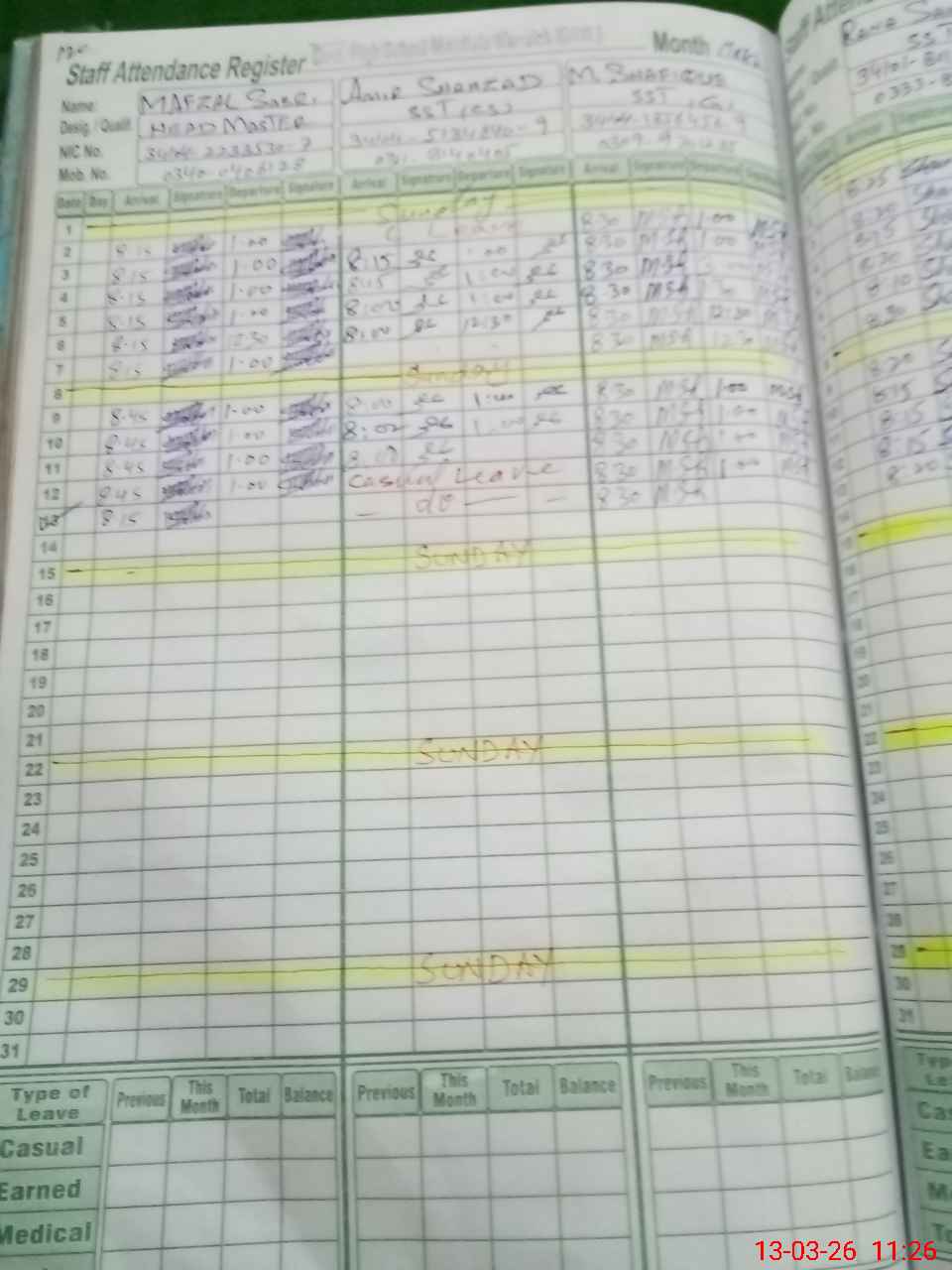 | 34**** | Aa**** Sh**** | SST Computer Science | Regular | 1 | 0 | 0 | 0 | 0 | 0 | 0 | 0 | 1 | Casual |