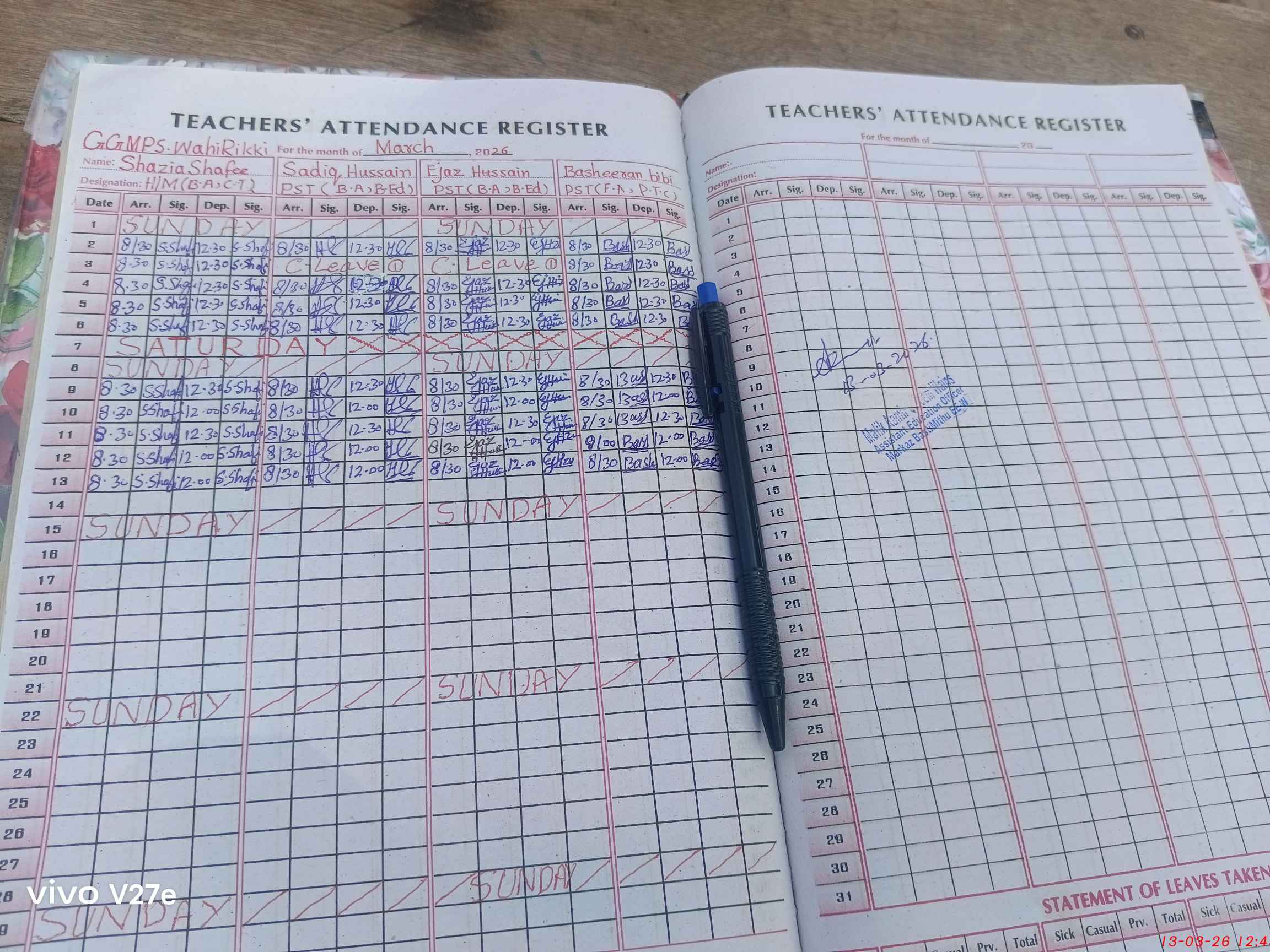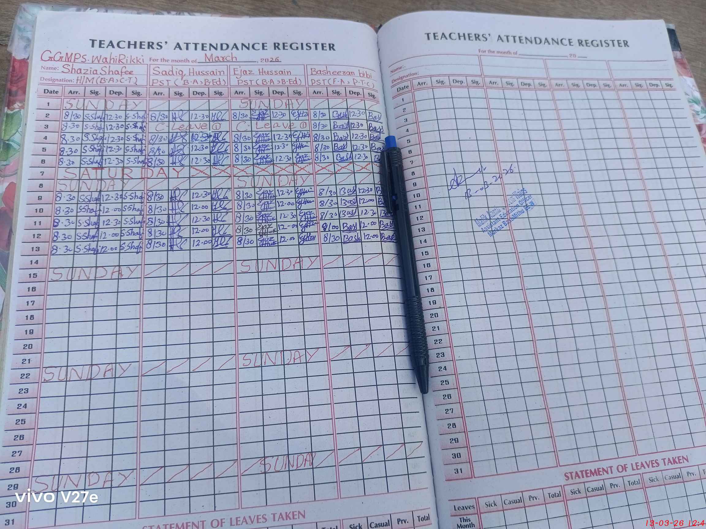 | Name: Sh**** Sh**** Designation: (School Headmaster's/Headmistress's) PST Phone/Cell Number: 03**** |