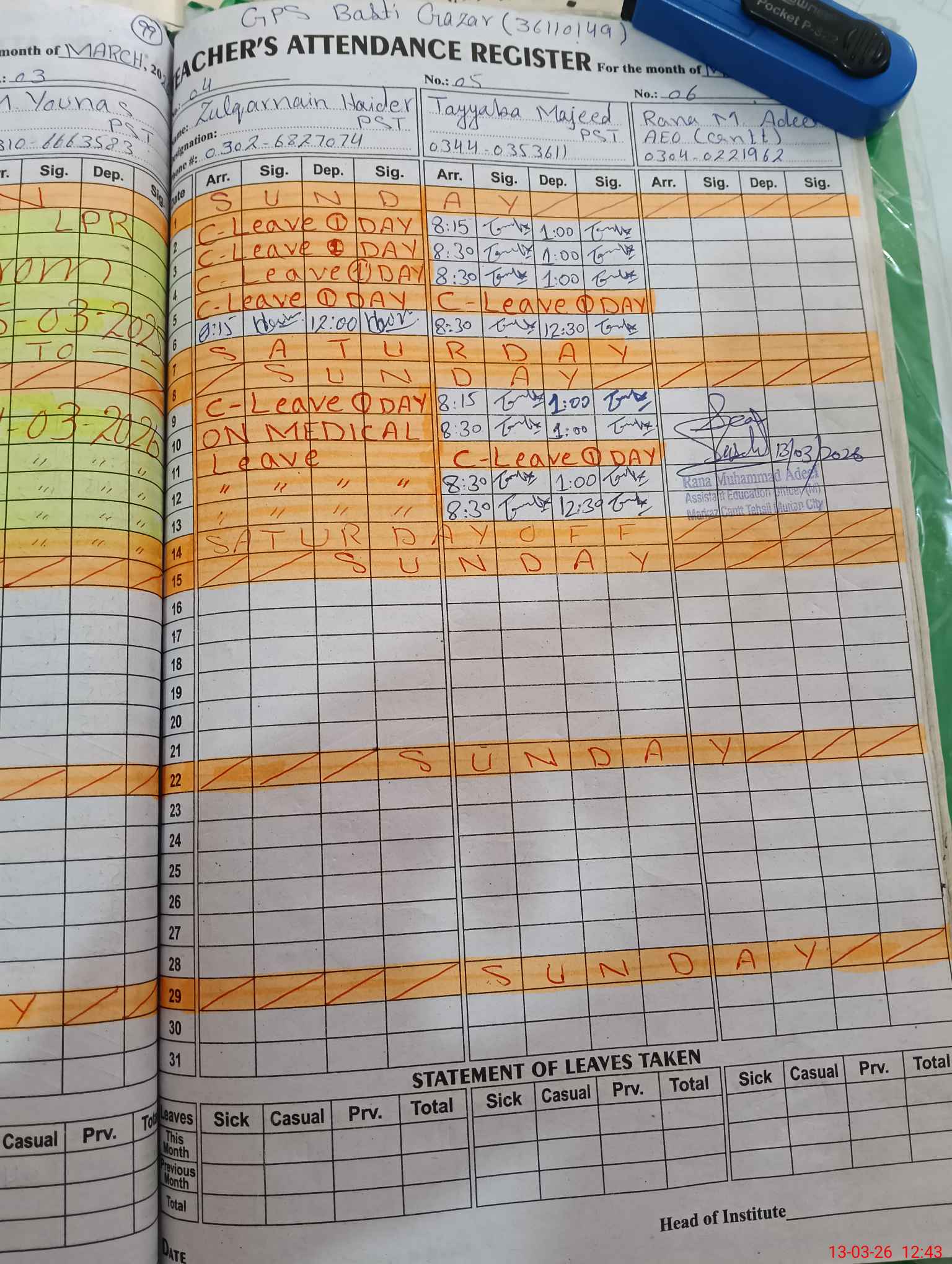 | 36**** | Um**** Ze**** | PST Science/Maths | Regular | 0 | 0 | 0 | 0 | 0 | 0 | 0 | 0 | 0 | Casual |
