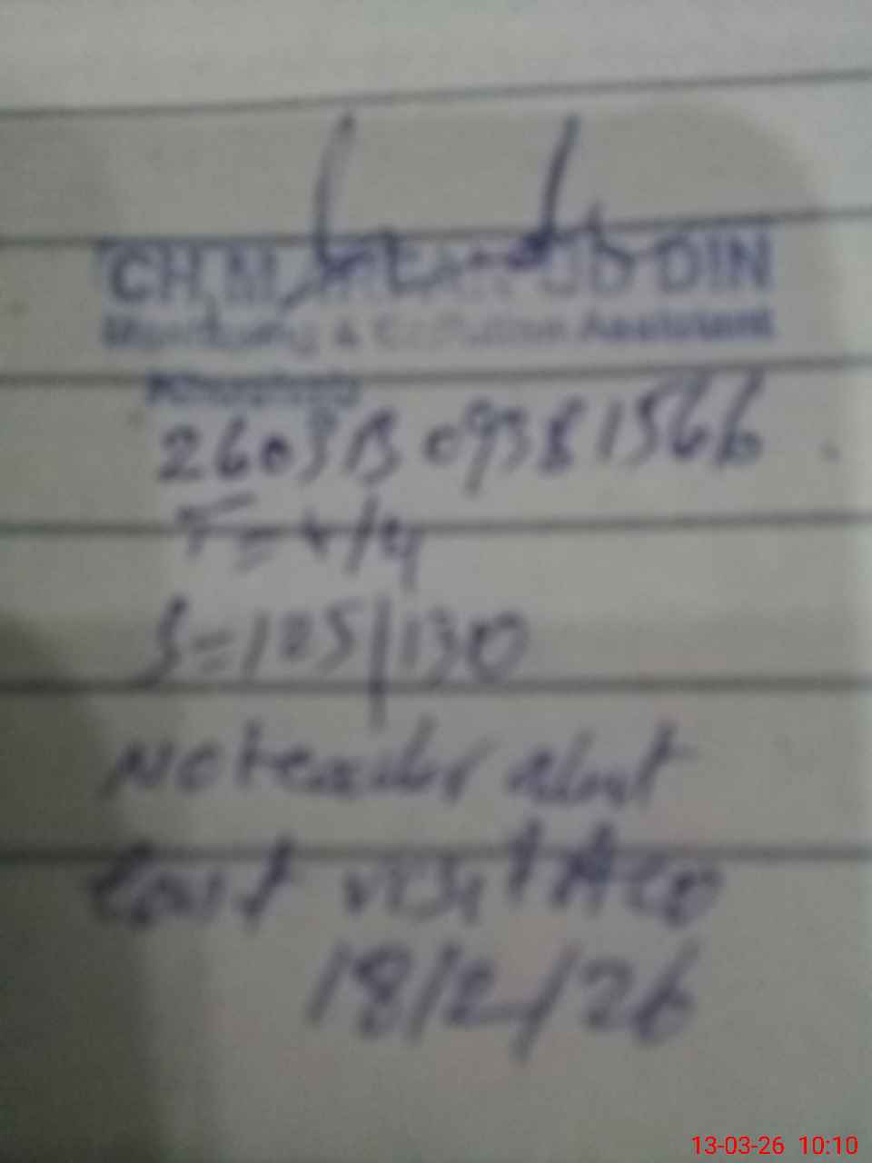 | Monitoring Date: 13-03-2026 | Start Time: 13-03-2026 09:38 AM | End Time: 13-03-2026 10:10 AM | Name of MEA: MU**** IR**** UDDI**** | |