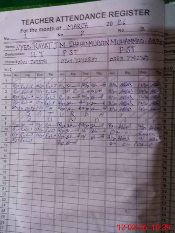 | Name: SY**** RA**** JA**** Designation: (School Headmaster's/Headmistress's) PST Phone/Cell Number: 03**** |