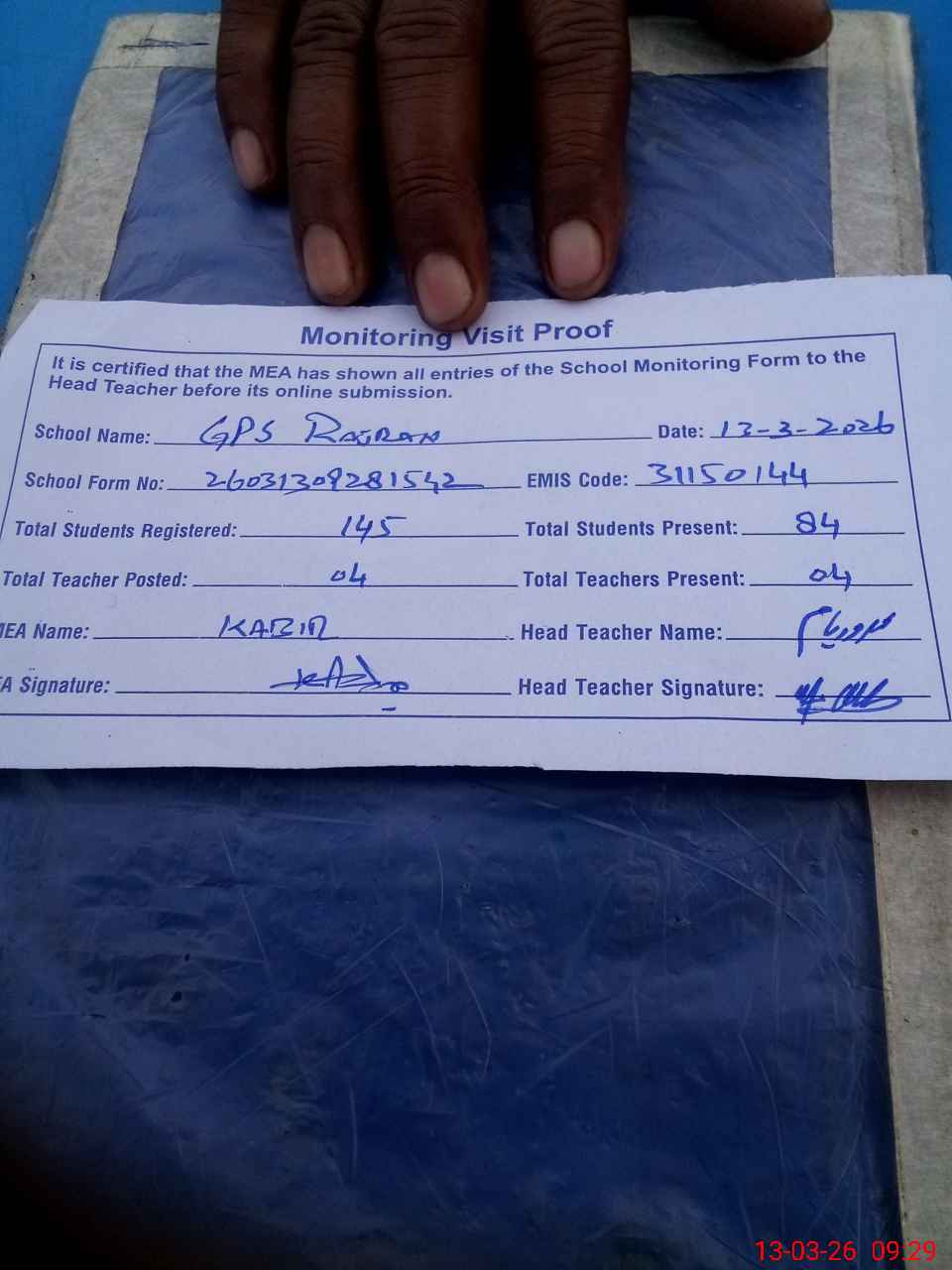 | EMIS Code: 31150144 | Name of School: GPS BASTI RAJRAN | |||