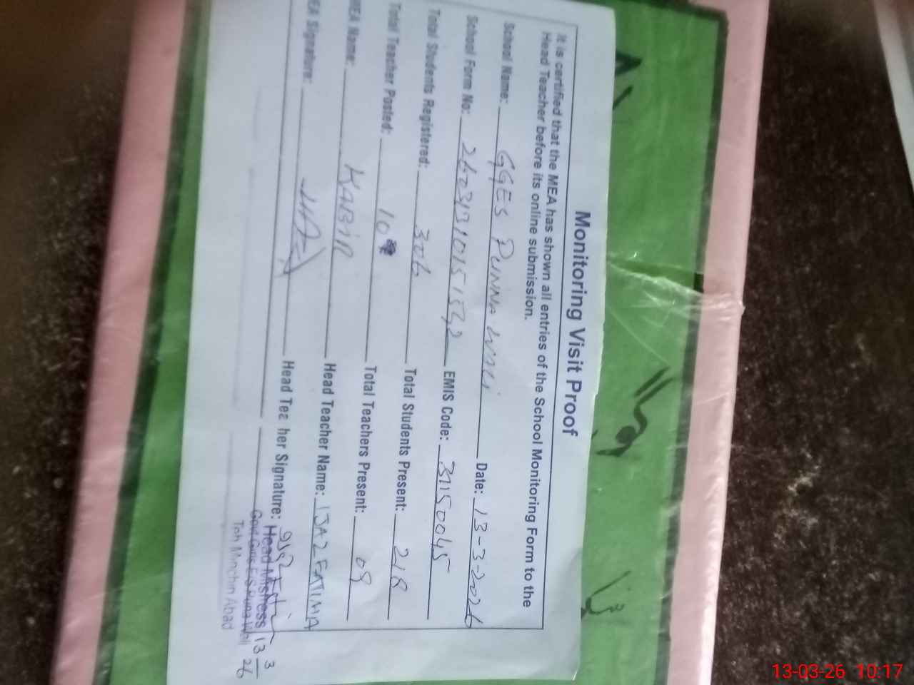 | EMIS Code: 31150045 | Name of School: GGES BASTI PUNA WALI | |||
