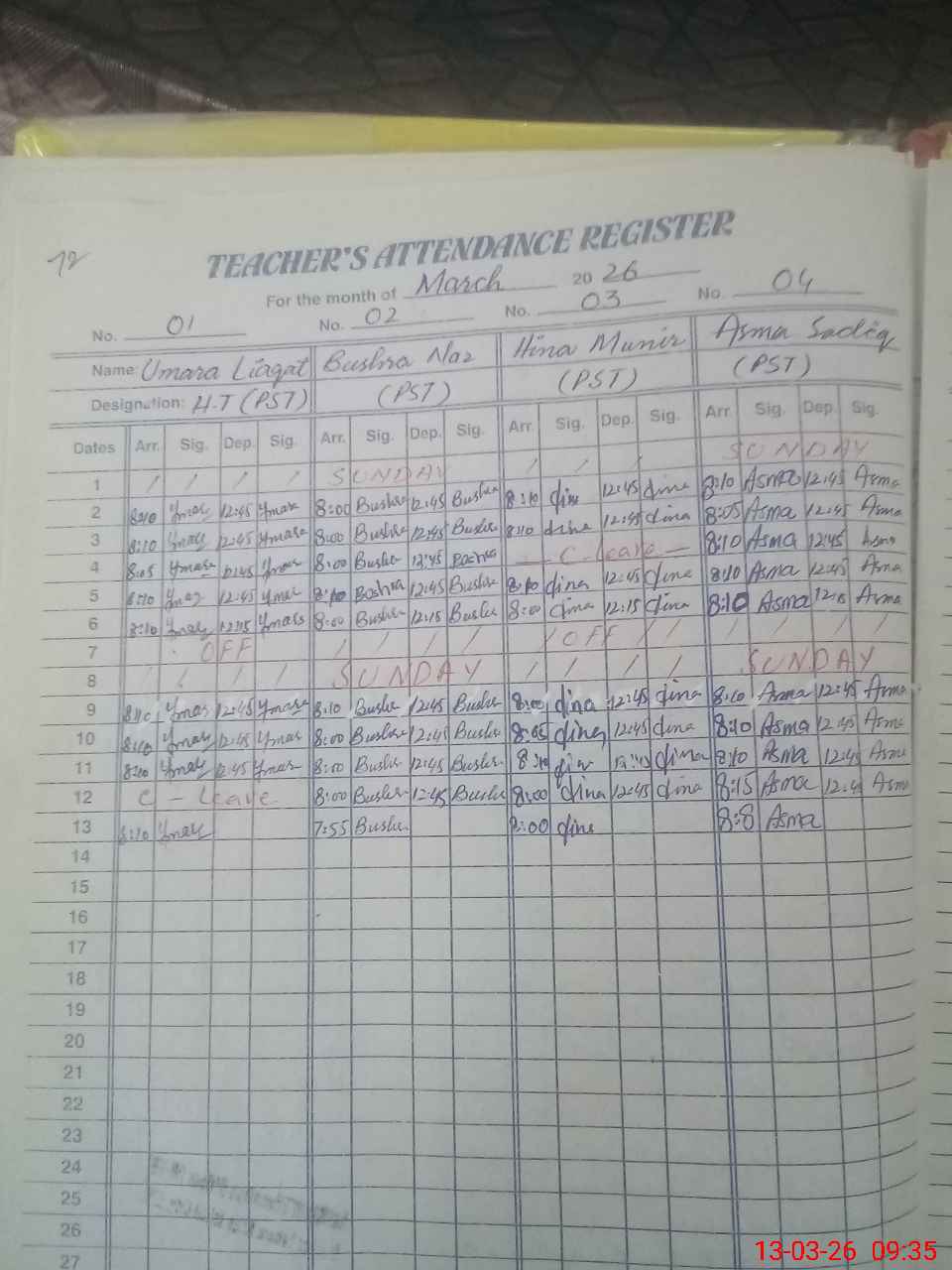 | Name: Um**** Li**** Designation: (School Headmaster's/Headmistress's) Head Mistress Phone/Cell Number: 03**** |