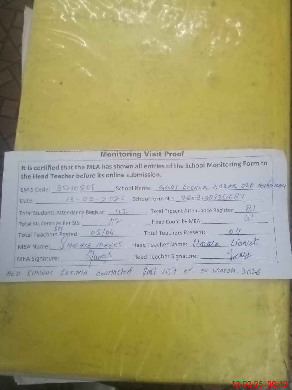| EMIS Code: 35210905 | Name of School: GGPS RASALA BAZAR OLD ANARKALI (EX-MCL) | |||