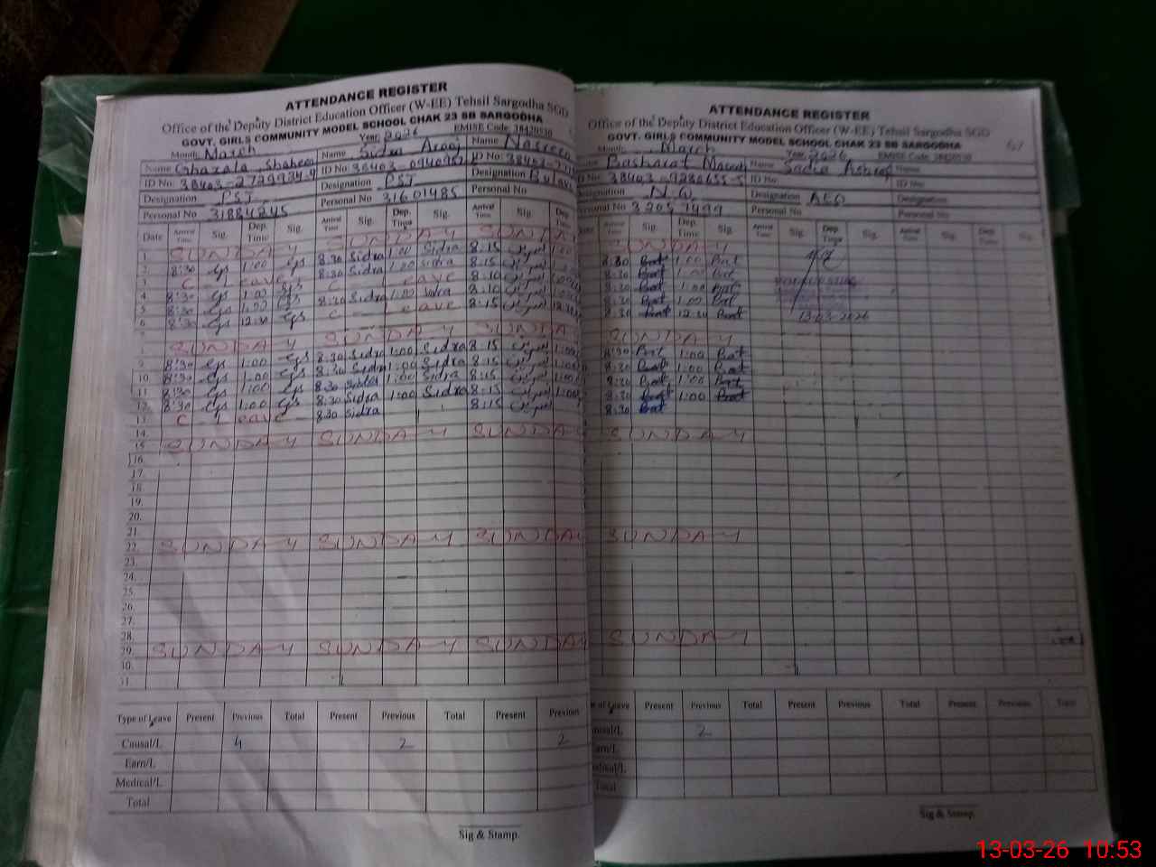| 38**** | Gh**** Sh**** | PST Arts | Regular | 0 | 0 | 0 | 0 | 0 | 0 | 0 | 0 | 0 | Casual |