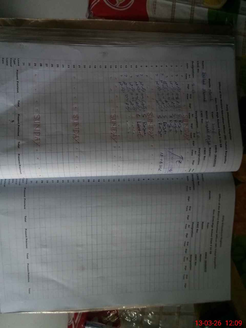 | CNIC | Full Name | Designation | R/C | Absence During Last Calender Month |