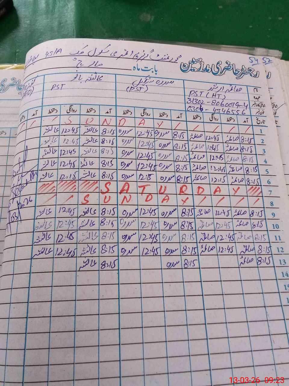 | Name: SI**** SH**** Designation: (School Headmaster's/Headmistress's) PST Phone/Cell Number: 03**** |