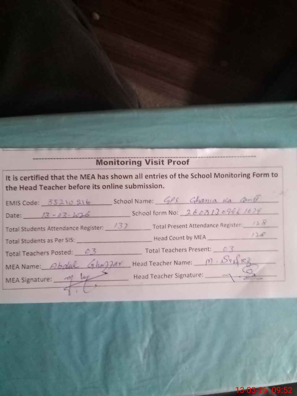 | EMIS Code: 35210216 | Name of School: GPS GHANIA KA CANTT-II | |||