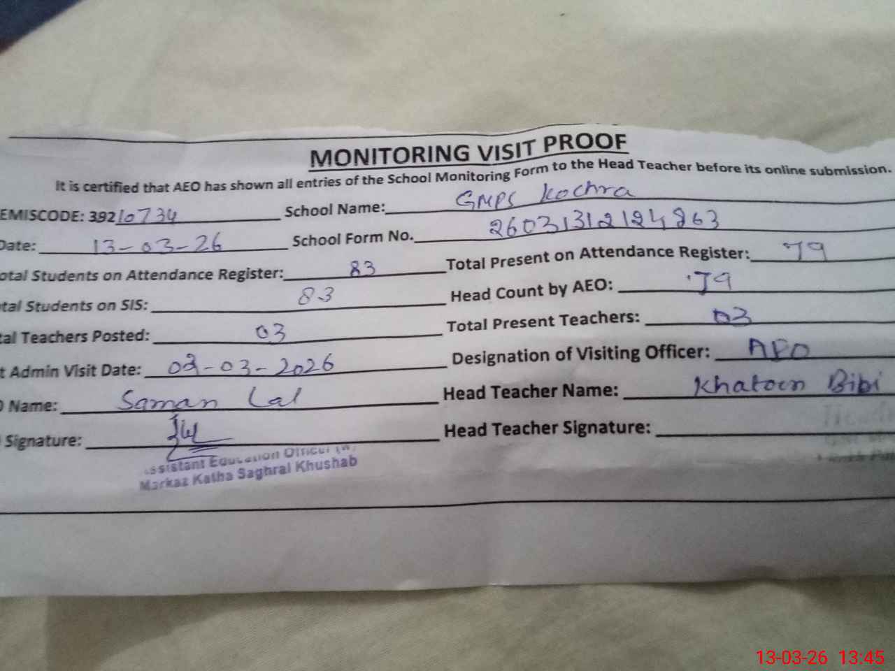 | EMIS Code: 38210734 | Name of School: GMPS KOCHRA | |||