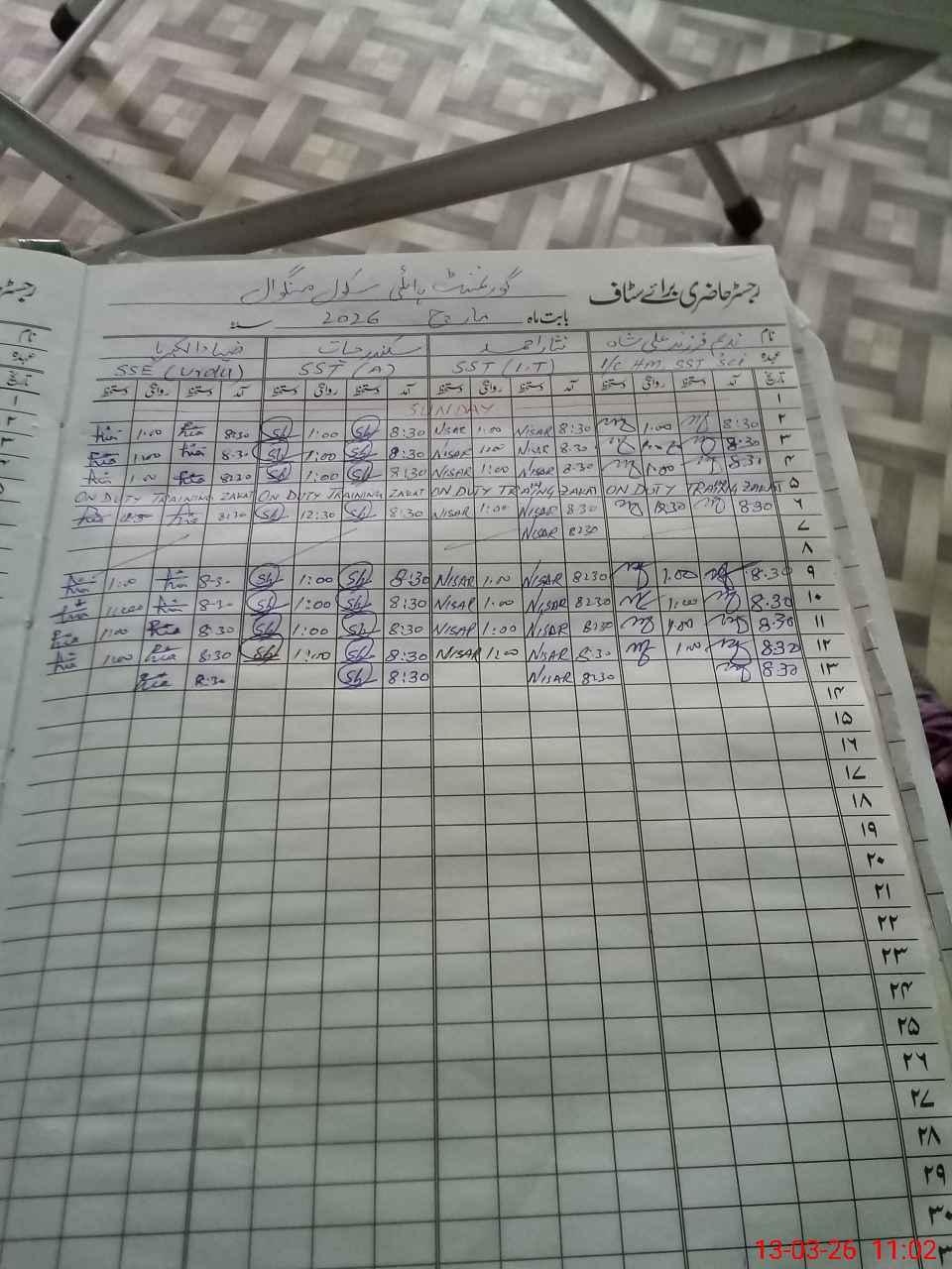 | CNIC | Full Name | Designation | R/C | Absence During Last Calender Month |