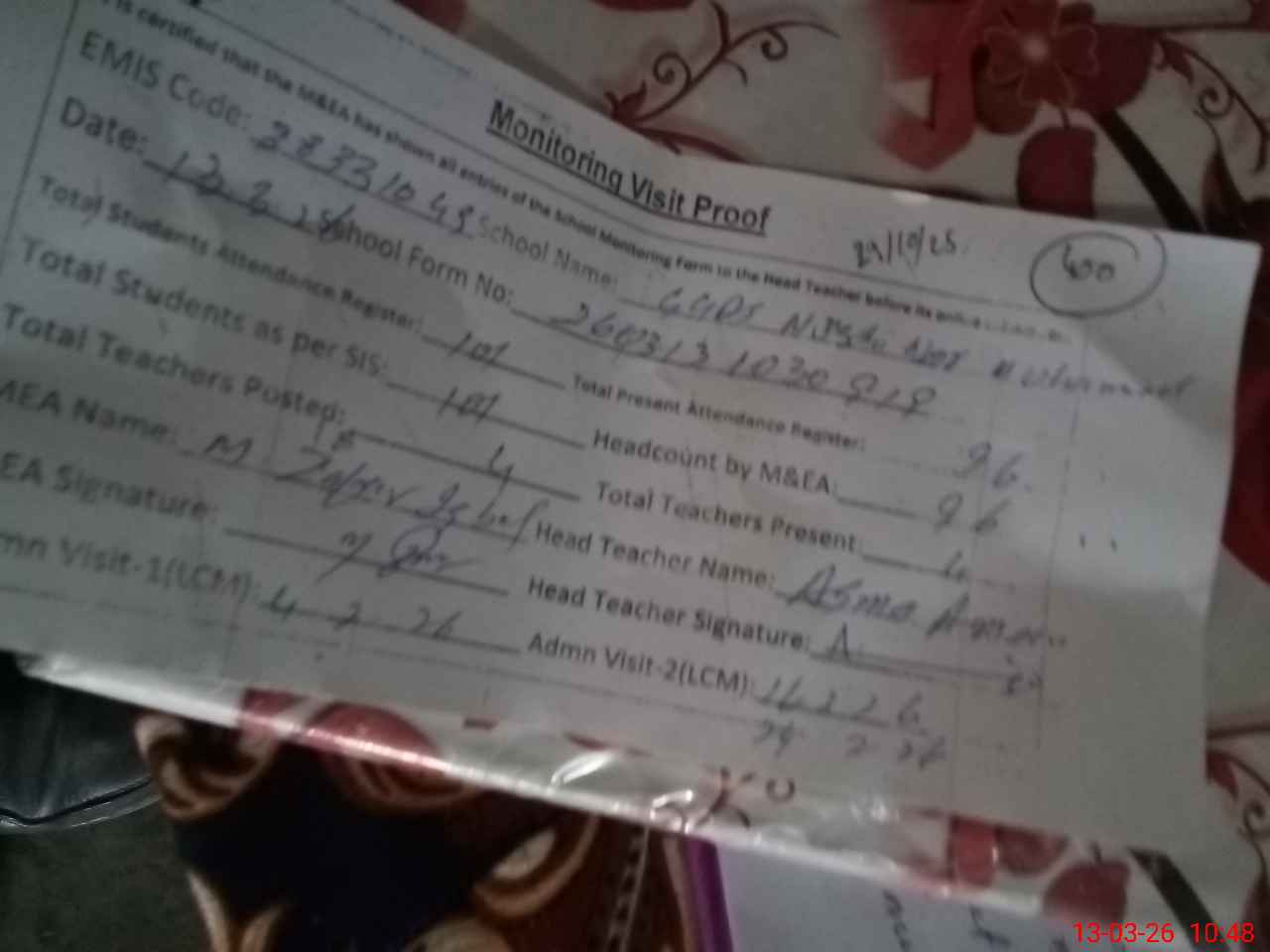 | EMIS Code: 38331049 | Name of School: GGPS MUNSHI NOOR MUHAMMAD KUNDIAN | |||