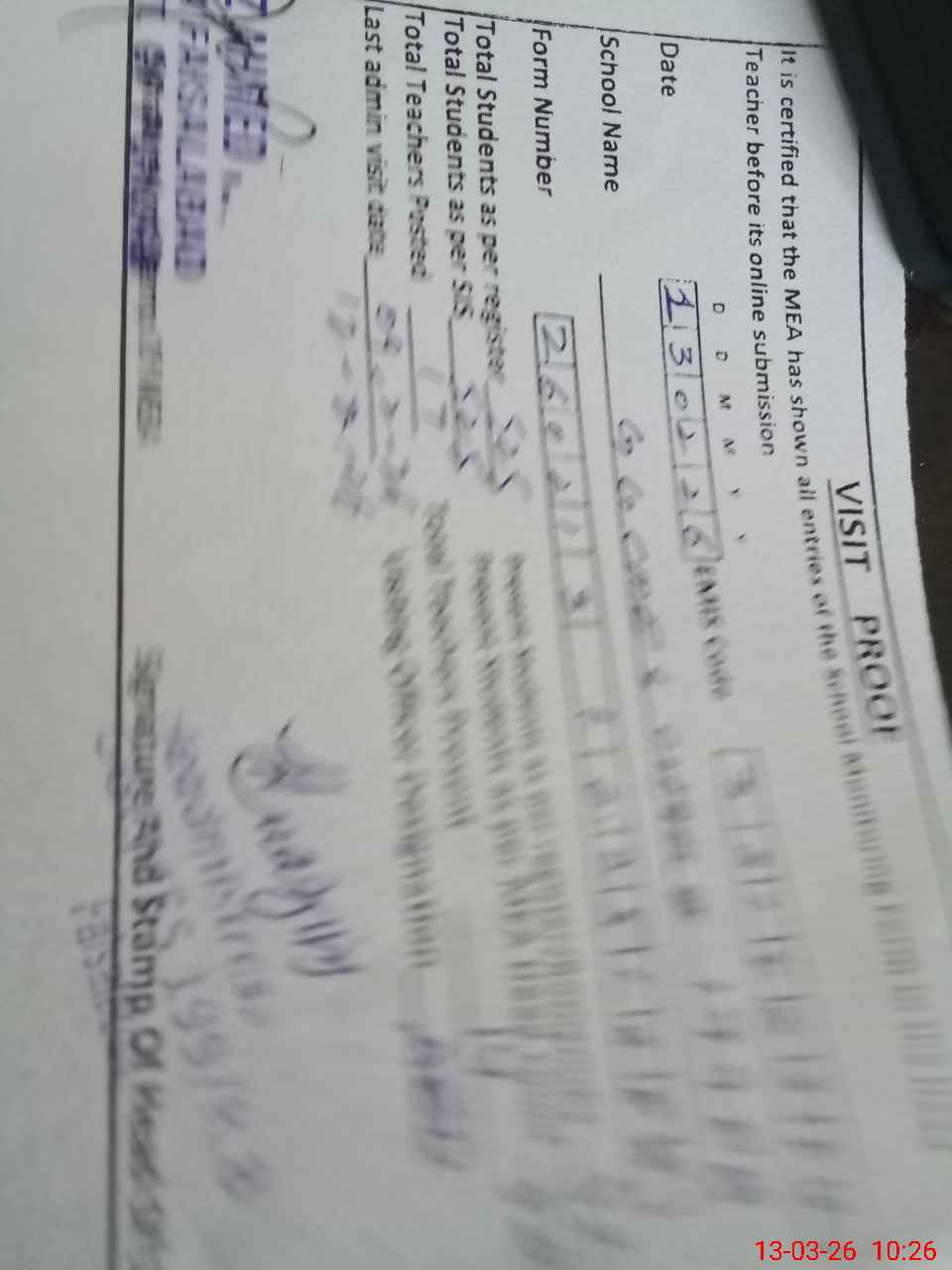 | Attendance Register | Head Teacher | MEA with School | Visit Proof |