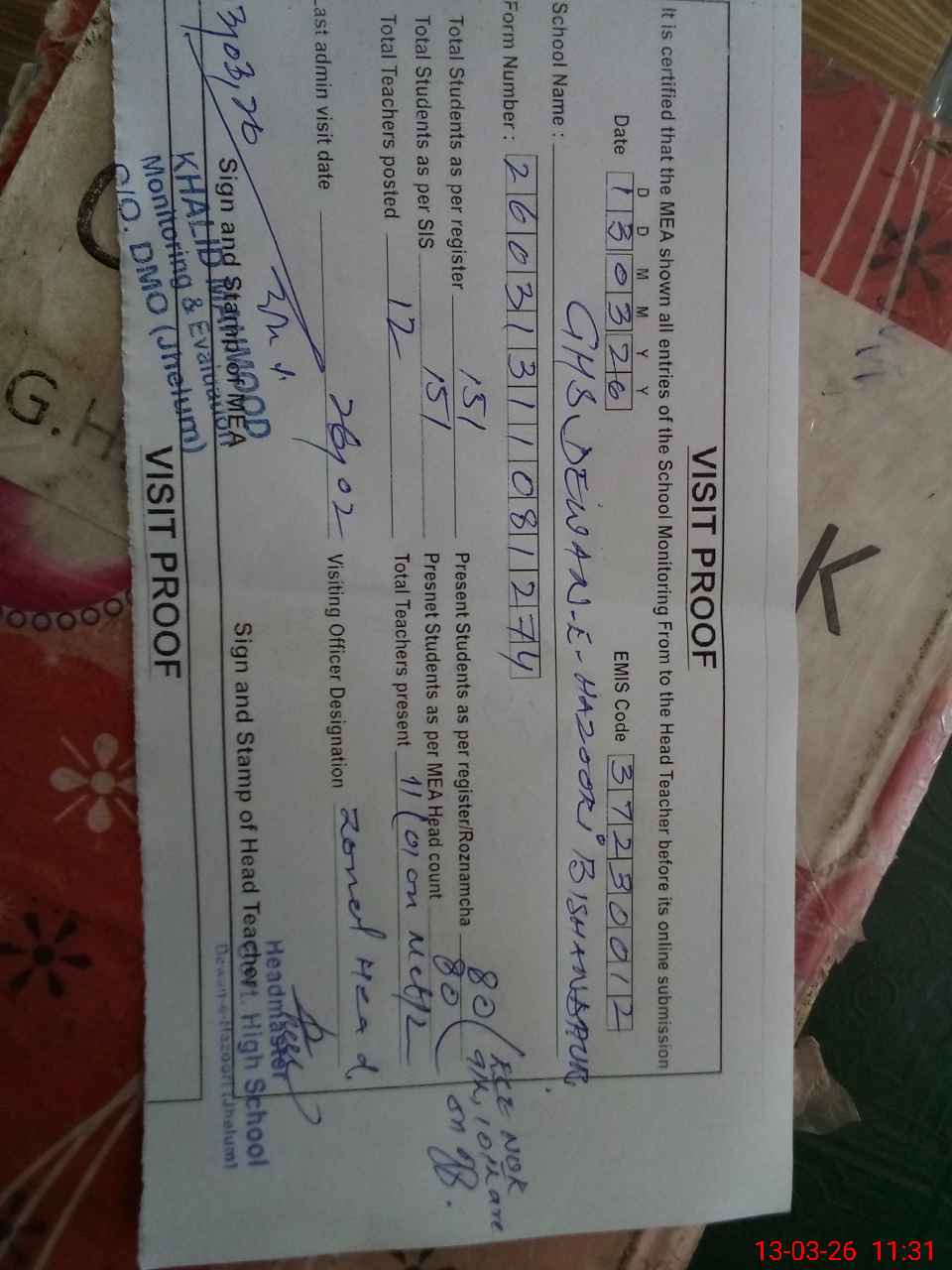 | EMIS Code: 37230012 | Name of School: GHS DEWAN HAZOORI (BISHANDAUR) | |||