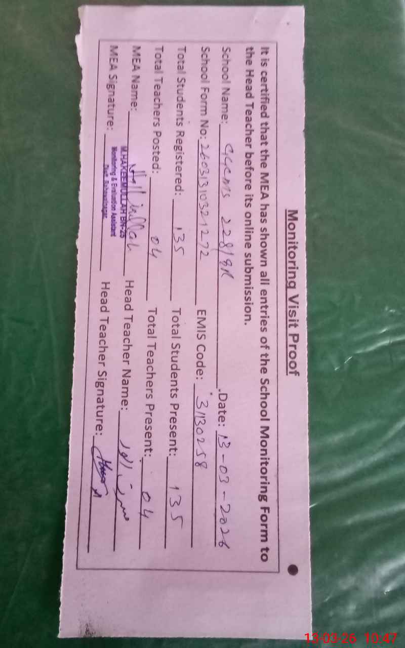| EMIS Code: 31130258 | Name of School: GGCMS CHAK NO 228/9-R | |||