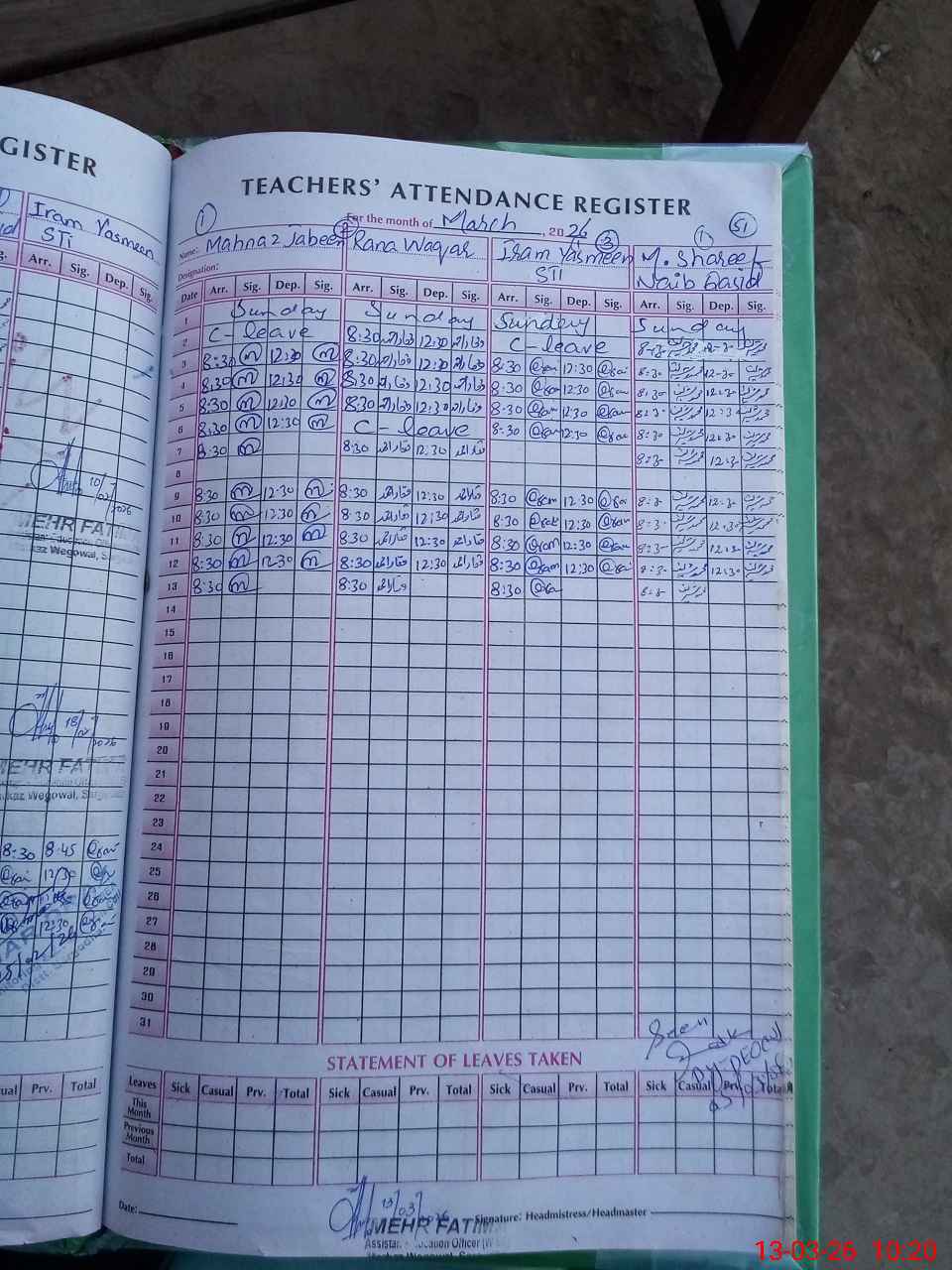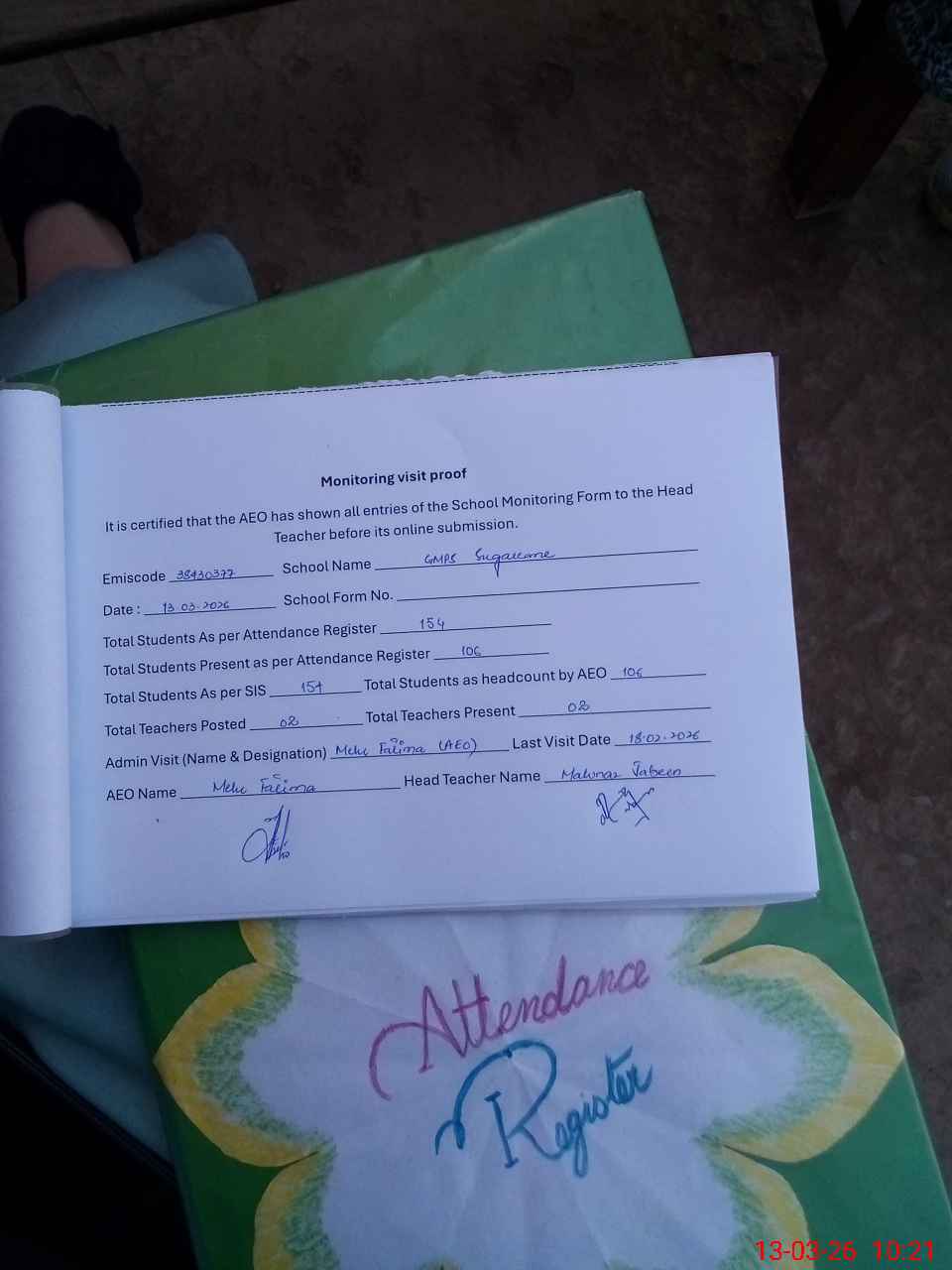 | Attendance Register | Head Teacher | MEA with School | Visit Proof |