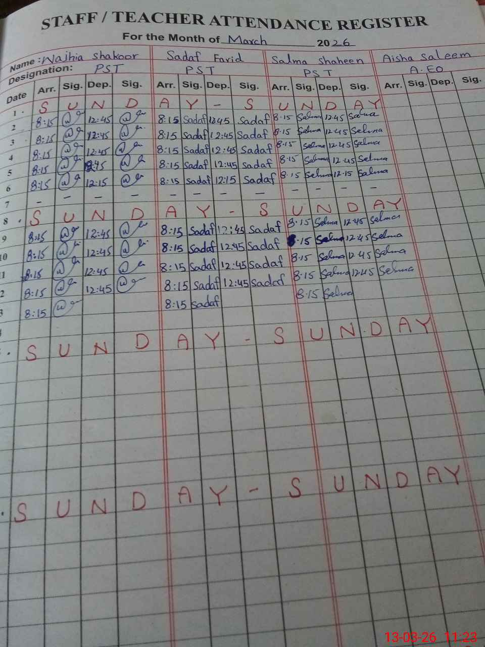 | CNIC | Full Name | Designation | R/C | Absence During Last Calender Month |