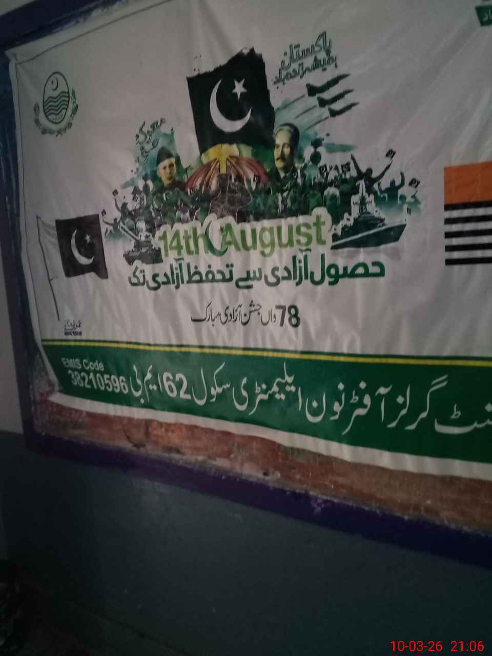 | EMIS Code: 38210596 | Name of School: GGPS CHAK NO. 62 MB | |||
