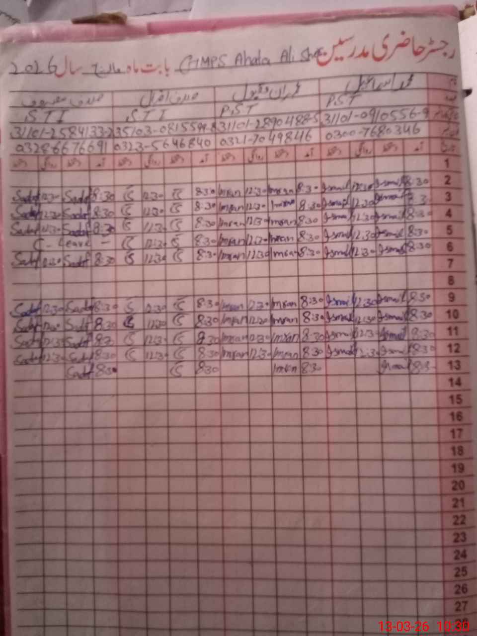 | EMIS Code: 31110396 | Name of School: GMPS AHATA ALI SHER | |||