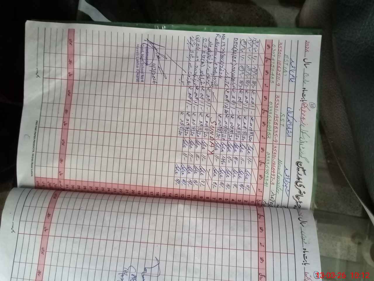 | Name: Sh**** Ah**** Designation: (School Headmaster's/Headmistress's) HM OPS Phone/Cell Number: 03**** |