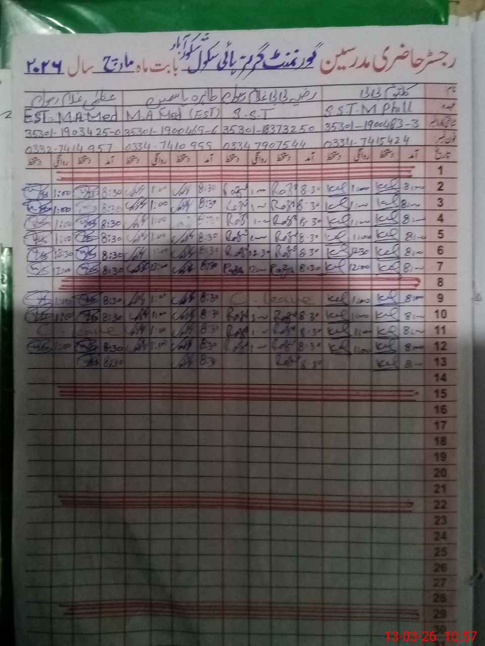 | Name: KA**** BE**** Designation: (School Headmaster's/Headmistress's) S.S.T.(Arts) Phone/Cell Number: 03**** |