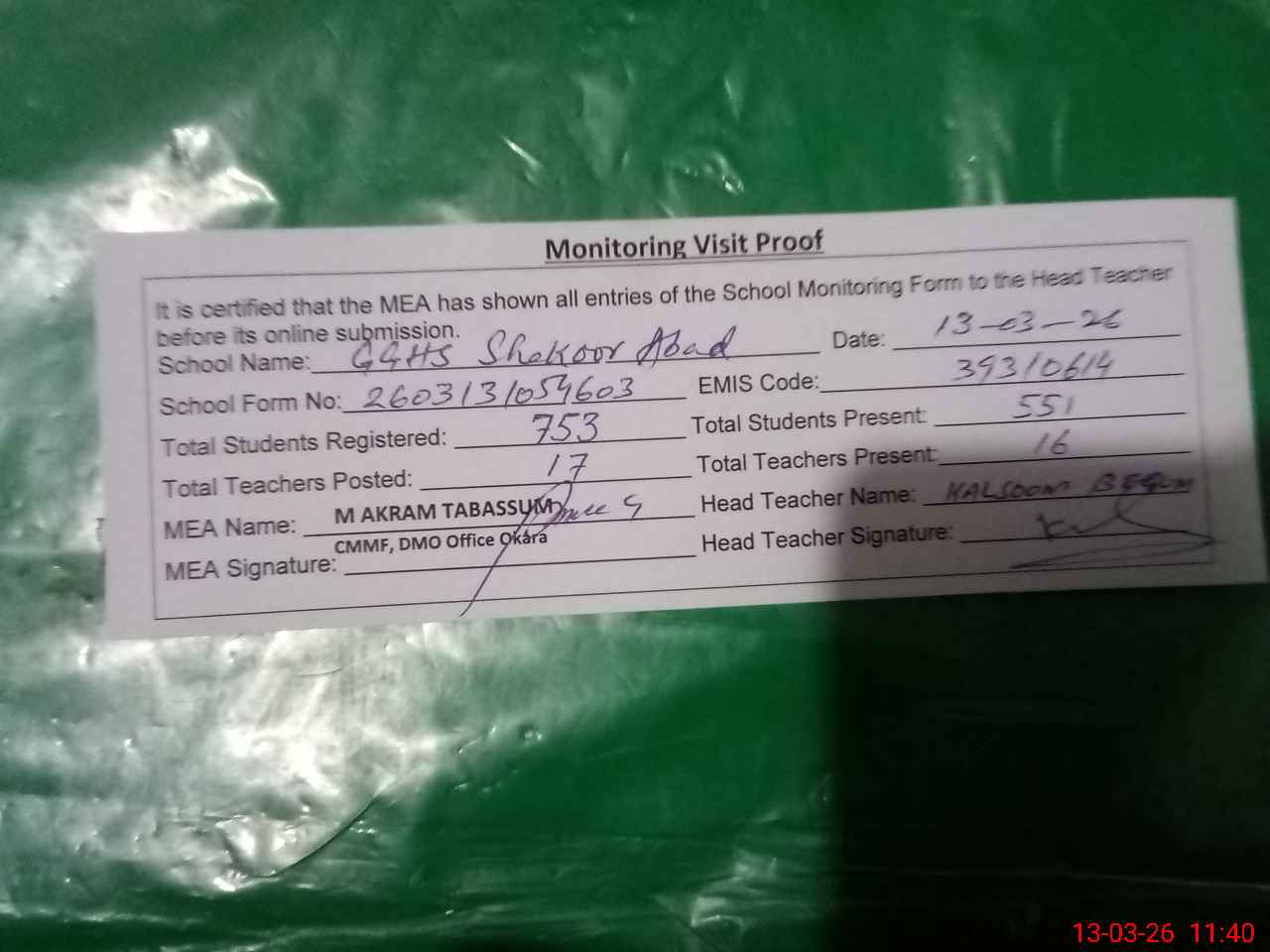 | EMIS Code: 39310614 | Name of School: GGHS SHAKOOR ABAD | |||