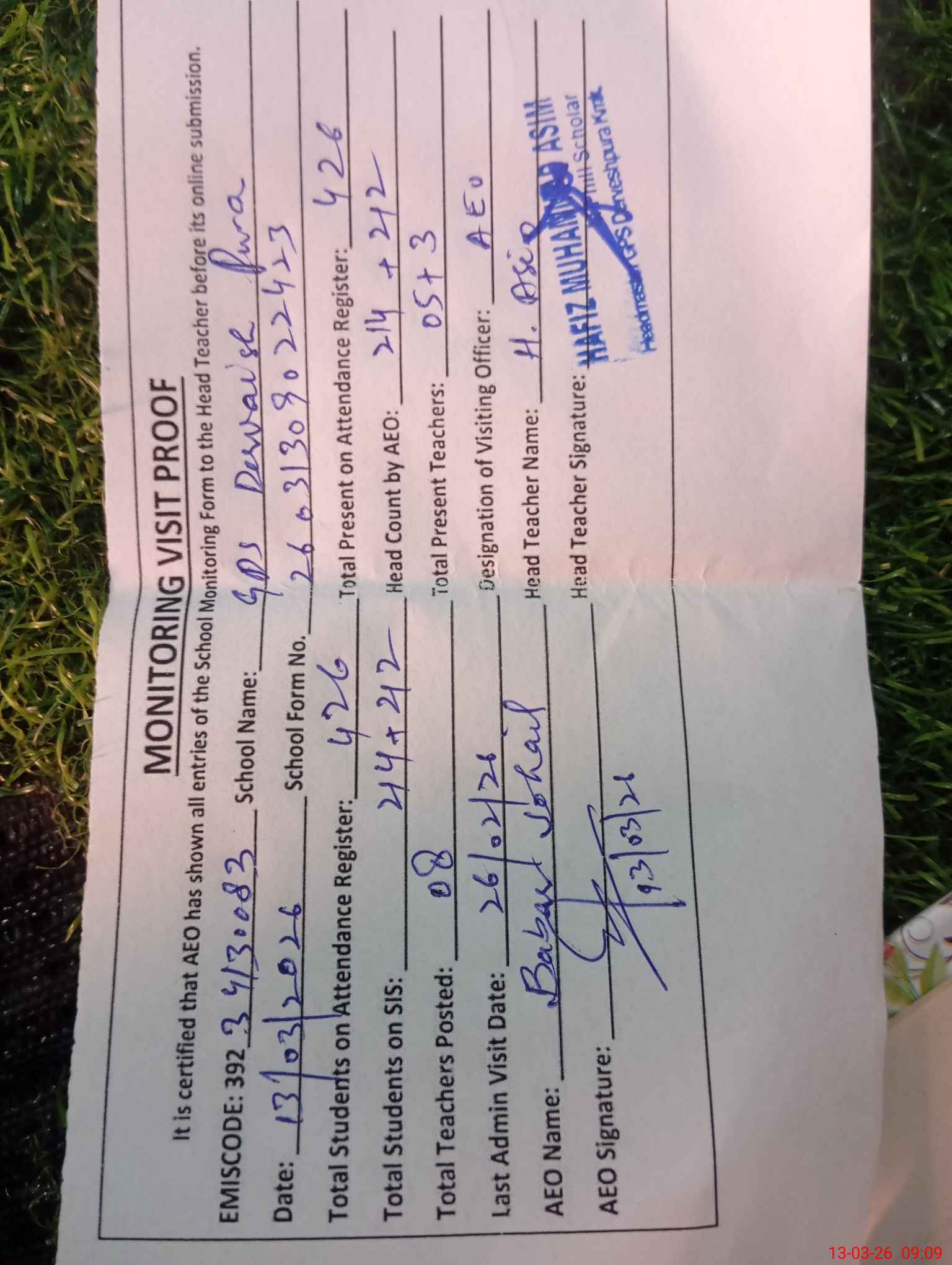 | EMIS Code: 34130083 | Name of School: GPS DERVESH PURA | |||