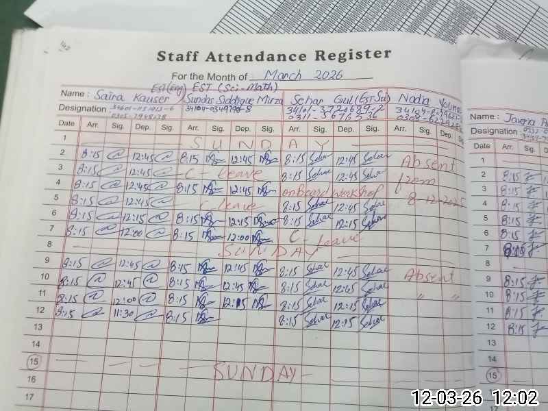 | 34**** | Aq**** Mu**** | Temporary | 0 | 0 | 0 | 0 | 0 | 0 | 0 | 0 | 0 | Exam Duty | |