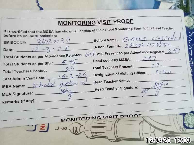 | EMIS Code: 34120030 | Name of School: GGHS WAZIRABAD | |||