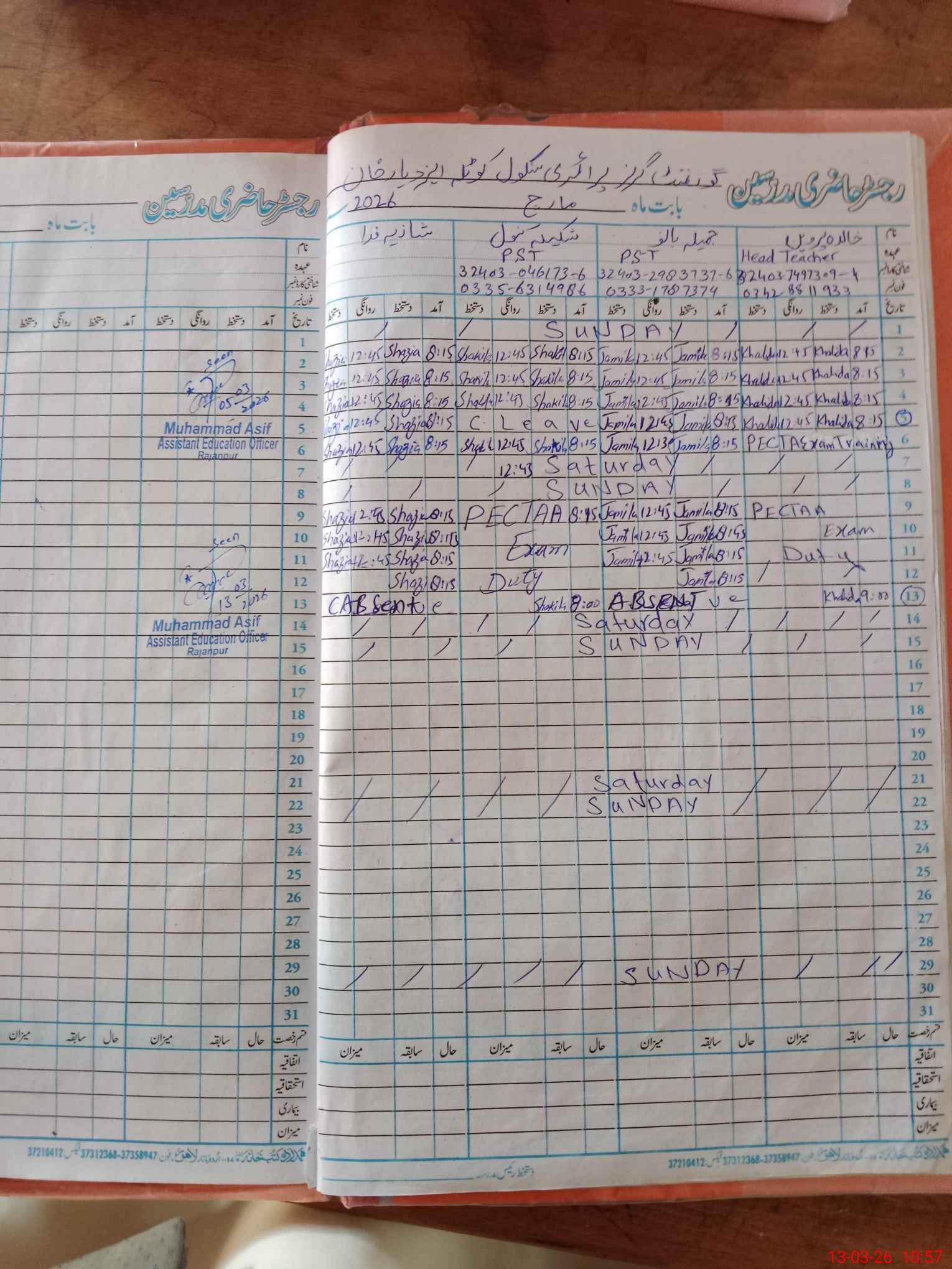 | Name: KH**** PE**** Designation: (School Headmaster's/Headmistress's) PST Phone/Cell Number: 03**** |