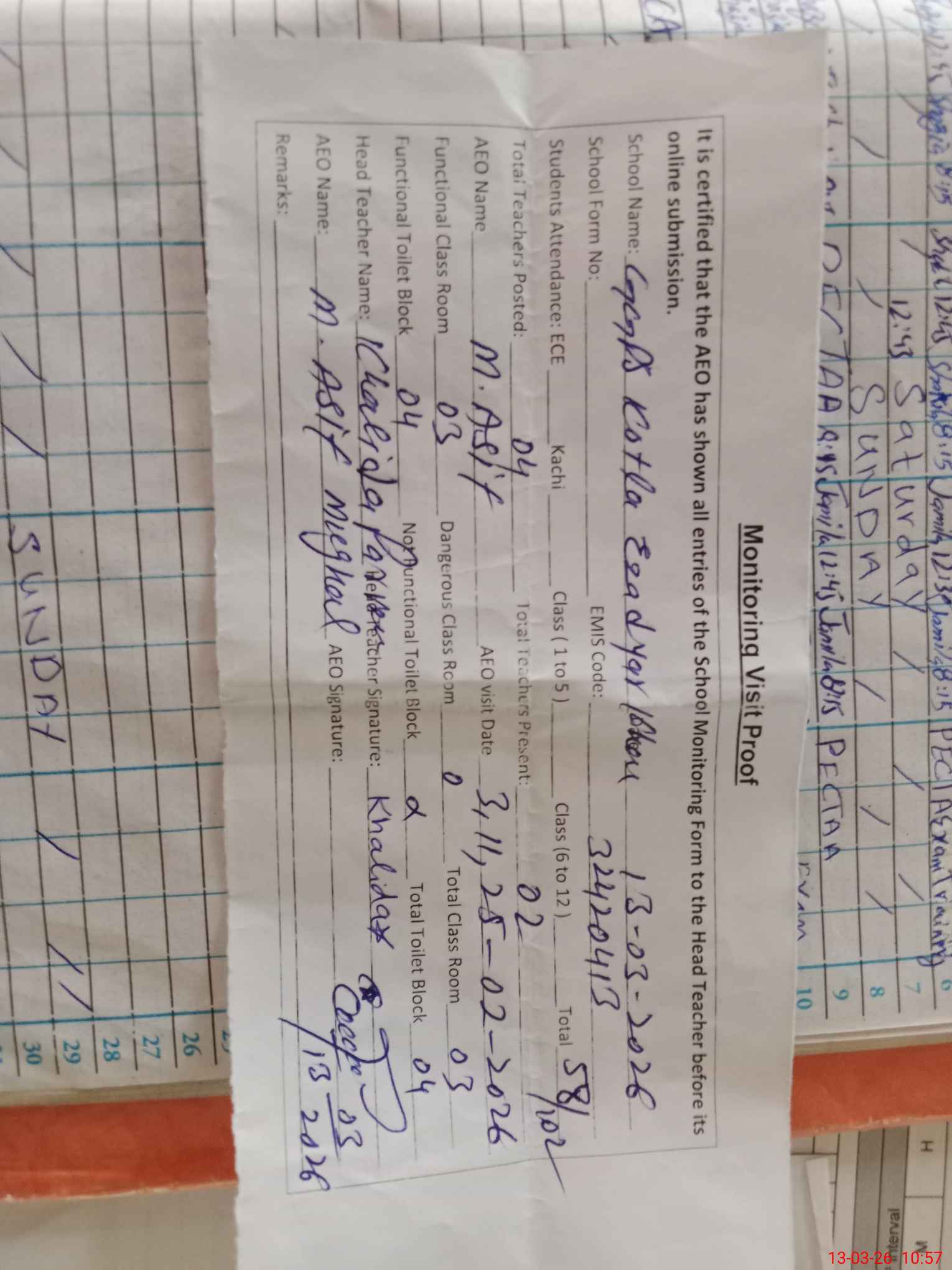 | EMIS Code: 32420413 | Name of School: GGPS KOTLA AIZAD YAR KHAN | |||
