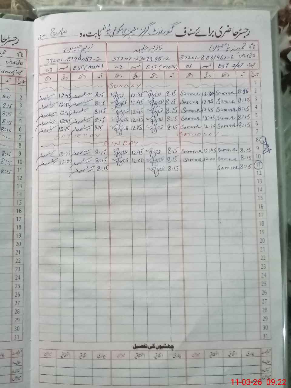| Name: Sa**** Ya**** Designation: (School Headmaster's/Headmistress's) HEADMISTRESS Phone/Cell Number: 03**** |