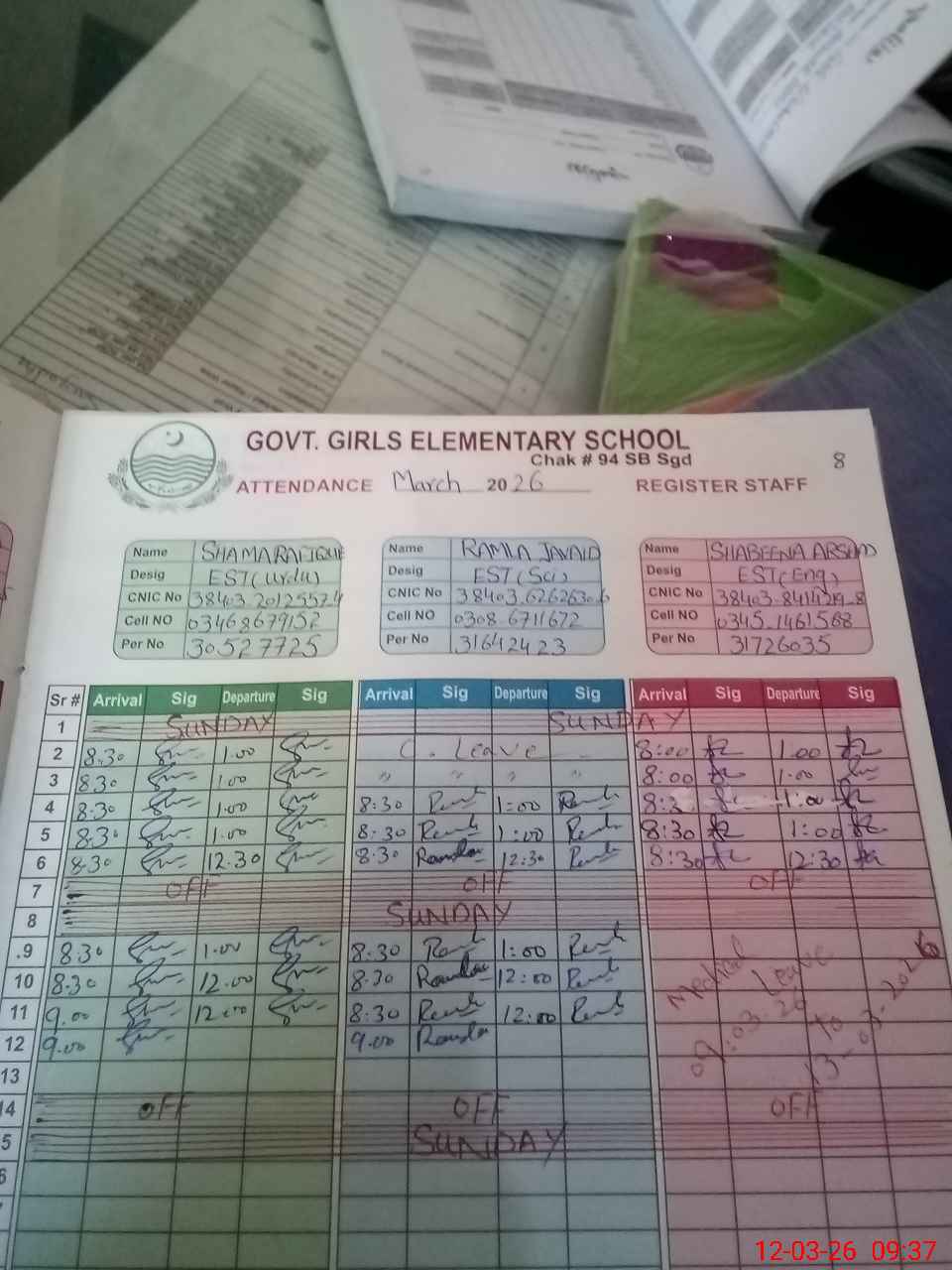 | CNIC | Full Name | Designation | R/C | Absence During Last Calender Month |