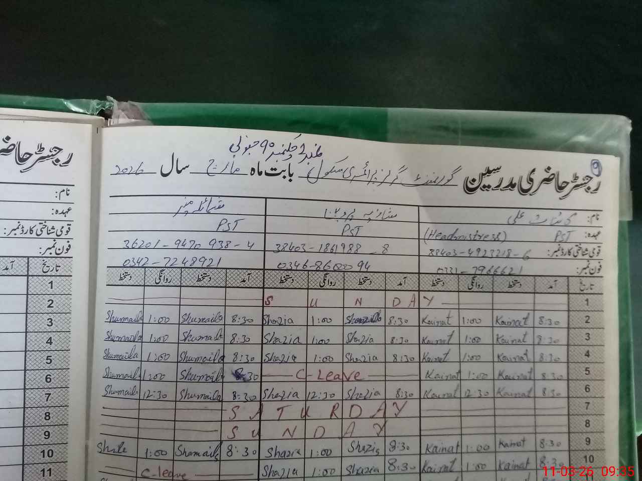 | Name: KA**** AL**** JA**** Designation: (School Headmaster's/Headmistress's) PST Phone/Cell Number: 03**** |