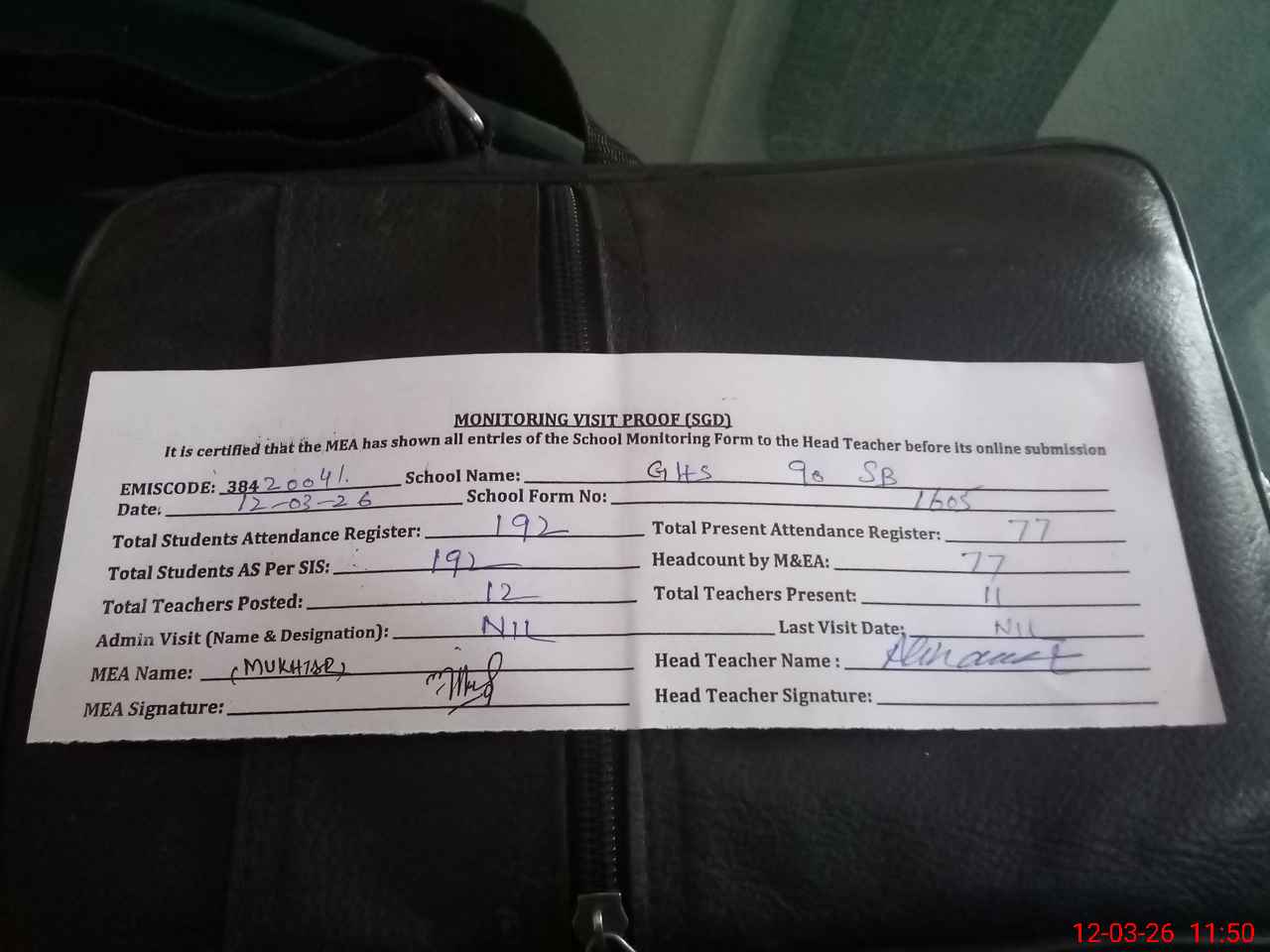 | EMIS Code: 38420041 | Name of School: GHS CHAK NO.90 SB SGD | |||