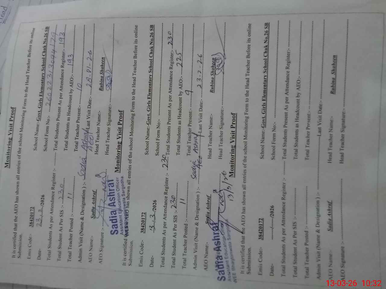 | EMIS Code: 38420172 | Name of School: GGES CHAK NO.26 SB | |||