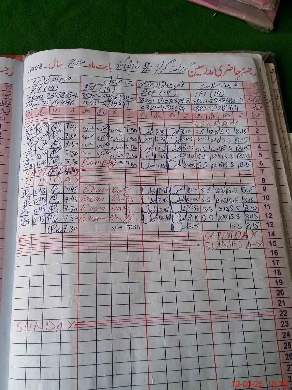 | Remarks (Use Separate Page if Required): Present students percentage is 97 percent Naib Qasid Mushtaq Ahmed is attached in this school and he is on casual leave today 35210714 | |||||
