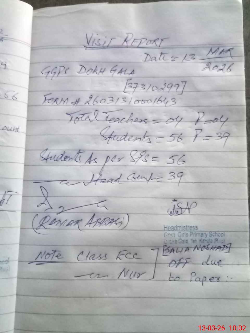 | Remarks (Use Separate Page if Required): ECE class Nur class both classes are on off due to paper schedule | |||||