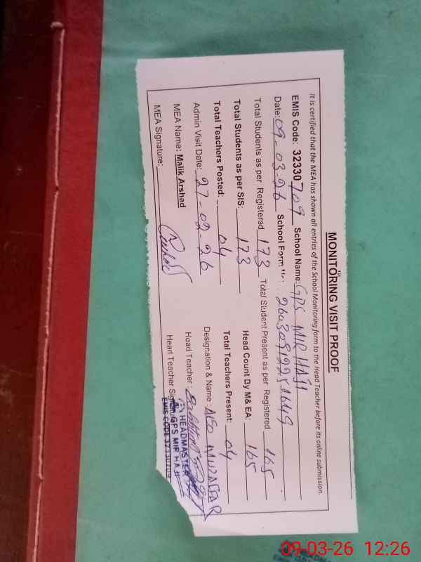 | EMIS Code: 32330709 | Name of School: GPS MIR HAJI | |||
