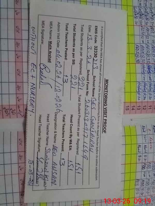 | Attendance Register | Head Teacher | MEA with School | Visit Proof |