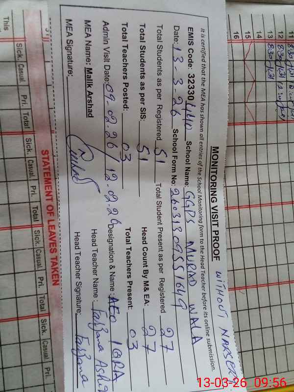 | EMIS Code: 32330440 | Name of School: GGPS MURAD WALA | |||