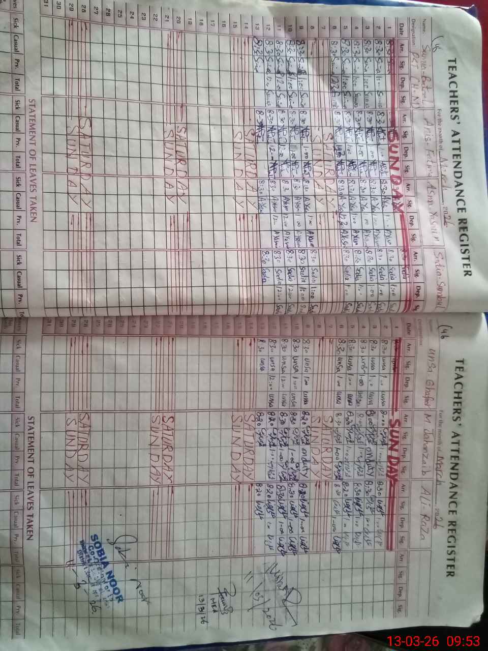 | Leave | Duty | Absent | Maternity | Medical | Ex- Pak |