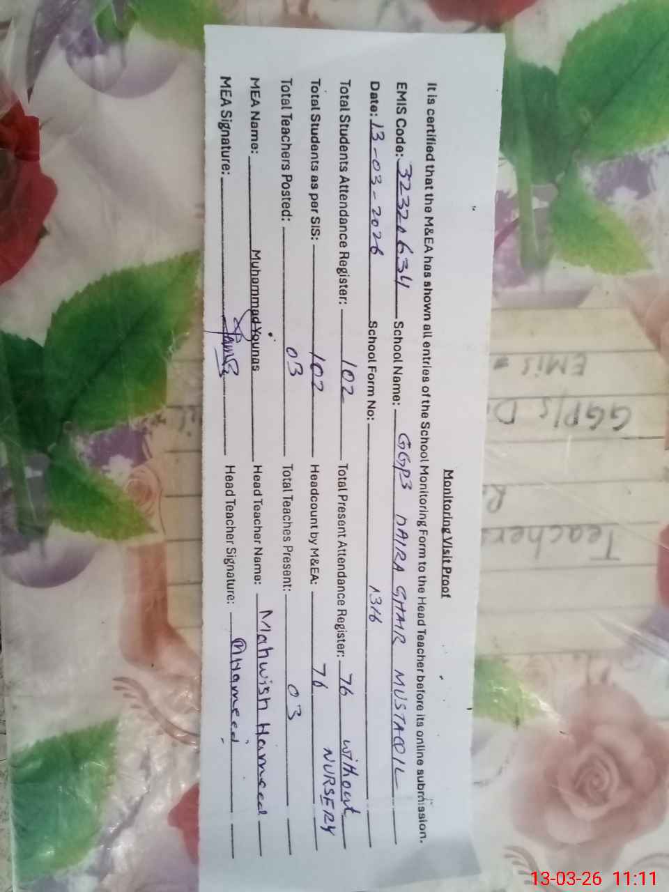 | EMIS Code: 32320634 | Name of School: GGPS DIARA GHAIR MUSTAQIL | |||
