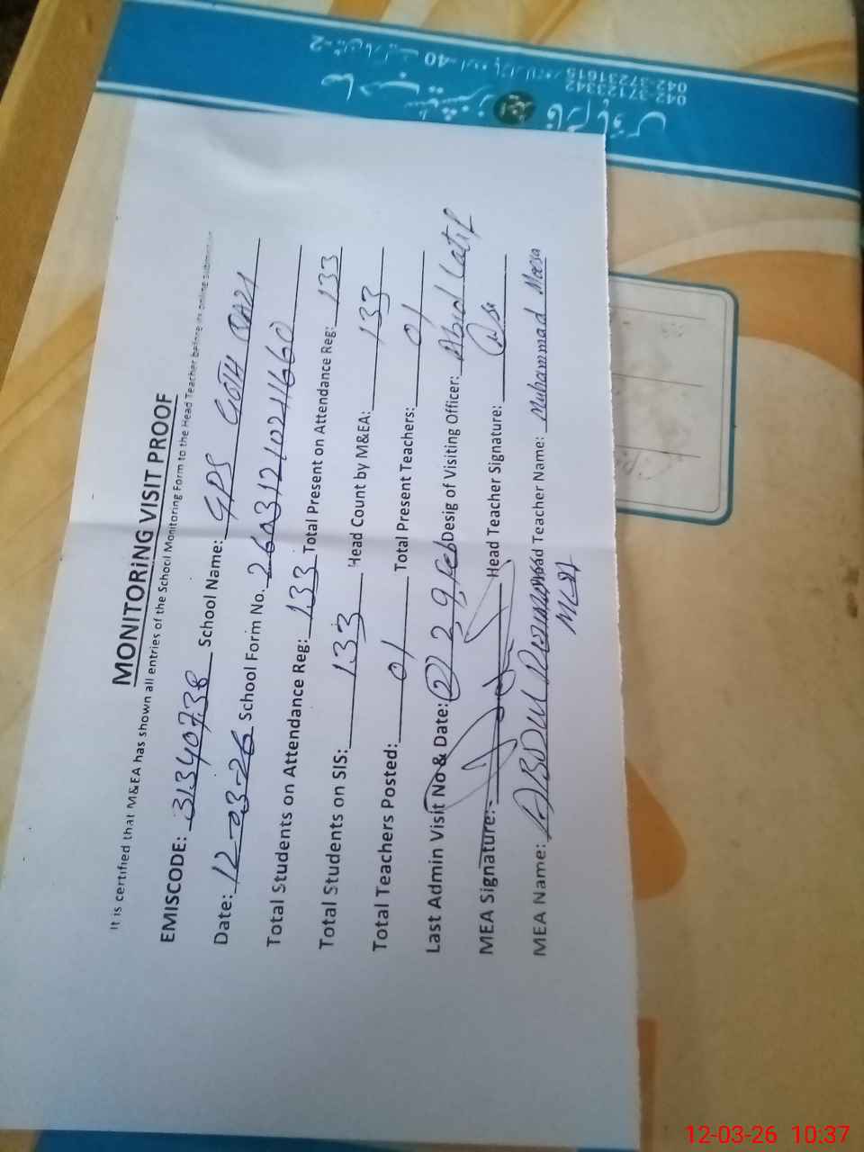 | EMIS Code: 31340738 | Name of School: GPS GOTH QAZI | |||