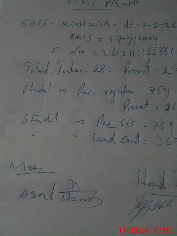 | Attendance Register | Head Teacher | MEA with School | Visit Proof |