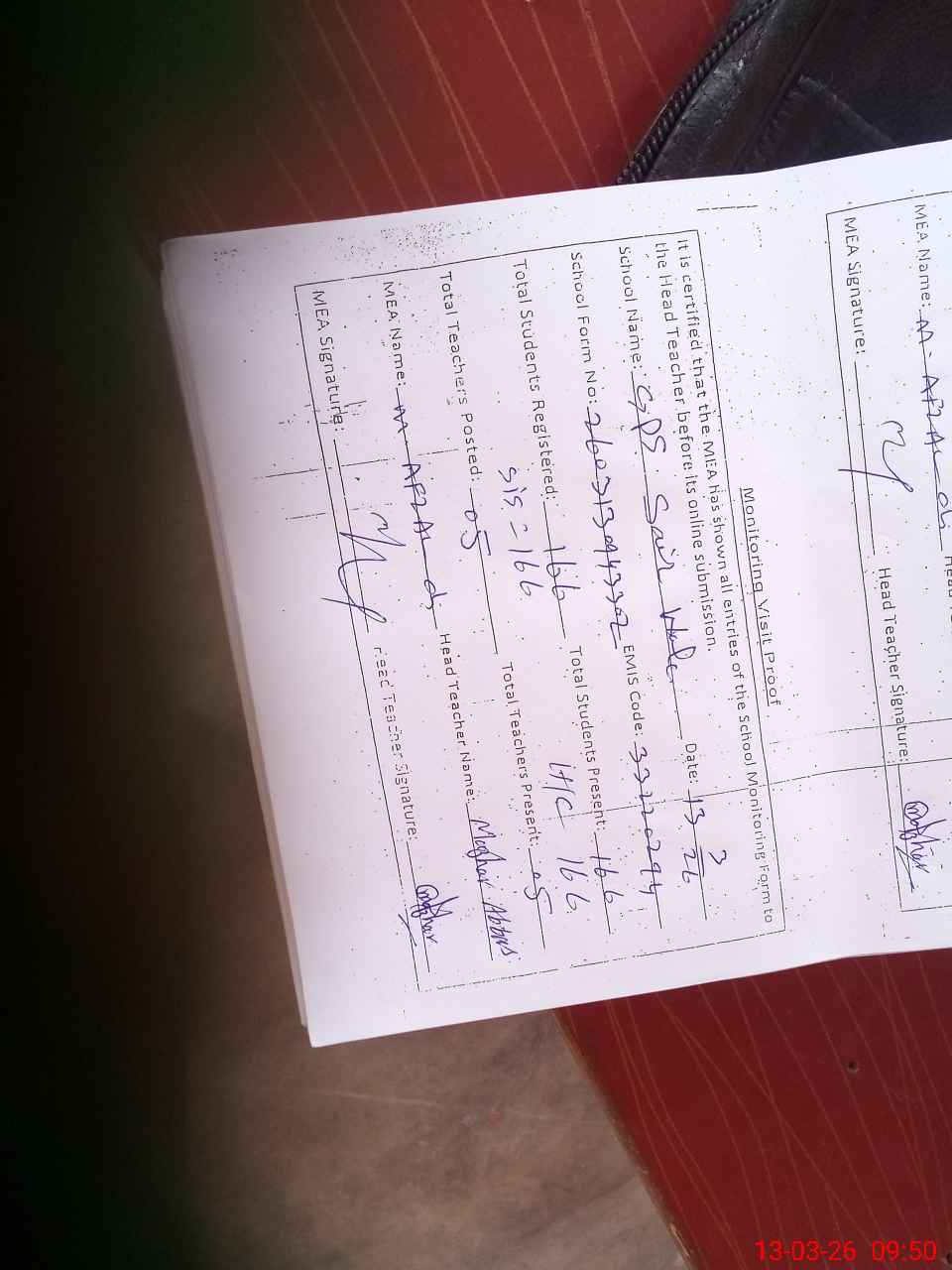 | EMIS Code: 33220294 | Name of School: GPS SAIR WALA | |||