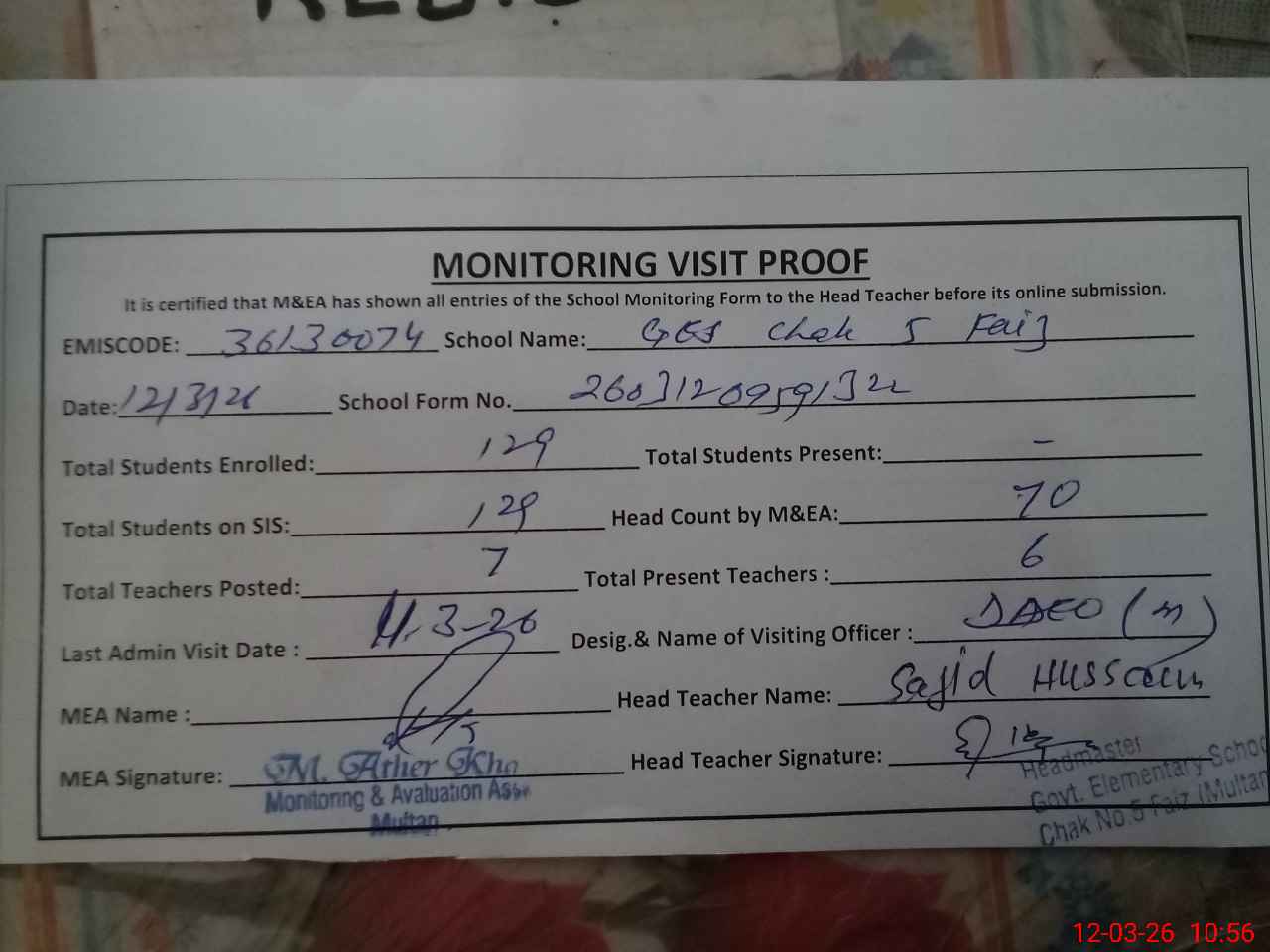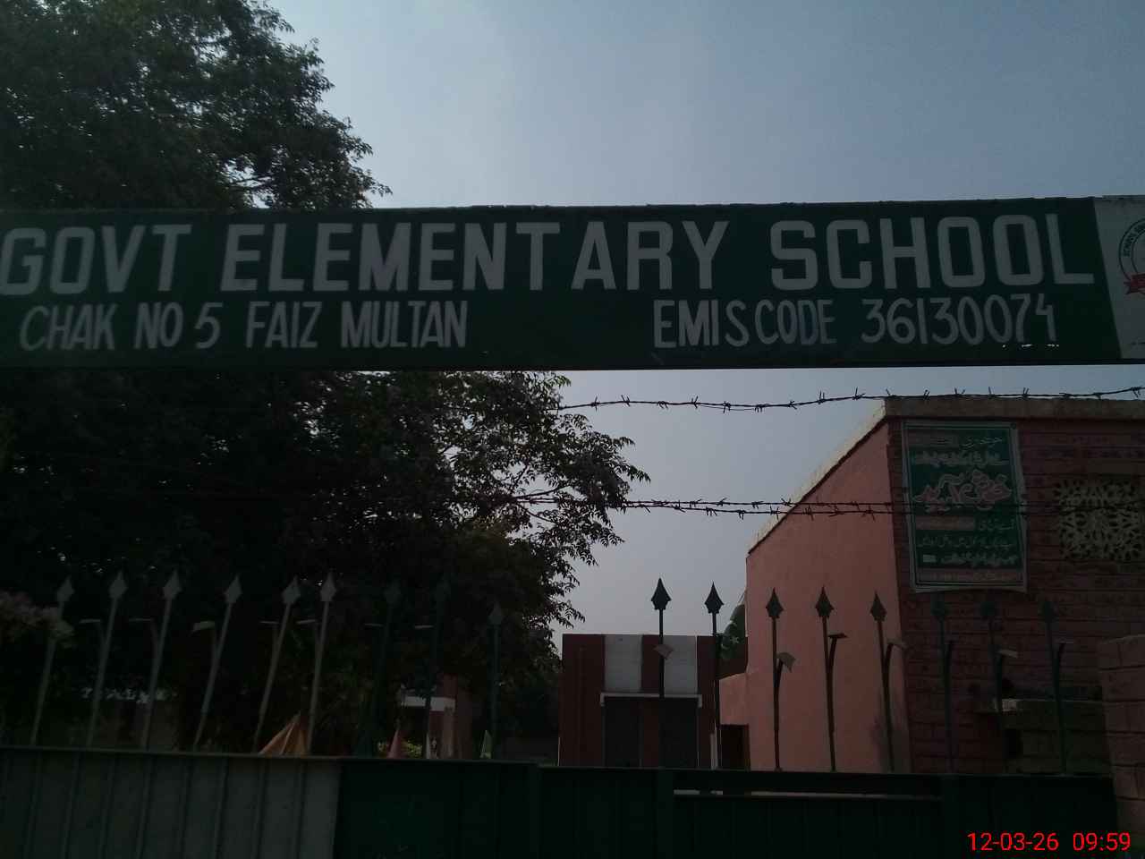 | EMIS Code: 36130074 | Name of School: GES CHAK 5 FAIZ MULTAN | |||